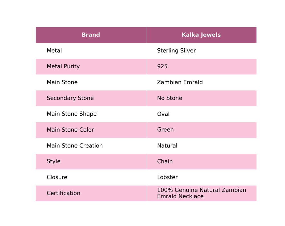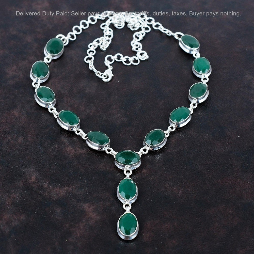 Note : Due to the natural formation of this gemstone. Slight variation in design and color are to be expected. Welcome to Kalka Jewels Christmas Sale 925 Silver Zambian Emrald Gemstone Wedding Chain Bezel Necklace Handmade Necklace, Sterling Silver Necklace, Zambian Emrald Necklace, Handcrafted Necklace SKU : KN-1415 Gemstone : Zambian Emrald Stone Shape : Oval Metal Purity : 925 Sterling Silver Necklace Length : 20 Inches Adjustable : Yes Silver Jewelry is a popular choice for many people due to its unique properties and numerous benefits. Here are some of the key properties and benefits of wearing silver jewelry: Properties: Durability: Silver is a durable metal that can withstand regular wear and tear. Malleability: Silver is highly malleable, which means it can be easily shaped and molded into various designs. Conductivity: Silver is an excellent conductor of heat and electricity. Anti-bacterial: Silver has natural anti-bacterial properties, which can help prevent the growth of harmful bacteria. Benefits: Aesthetic appeal: Silver jewelry is known for its beauty and versatility, and can be worn with a variety of outfits and styles. Hypoallergenic: Silver is generally hypoallergenic, which means it is unlikely to cause an allergic reaction in most people. Healing properties: Some people believe that wearing silver jewelry can help with various physical and emotional conditions, such as arthritis, anxiety, and depression. Spiritual significance: Silver has been used in various cultures for its spiritual and symbolic significance, and wearing silver jewelry can help to connect with these traditions. Investment value: Silver is a precious metal that retains its value over time, and investing in silver jewelry can be a smart financial decision. Overall, silver jewelry offers a unique combination of beauty, durability, and benefits, making it a popular choice for people around the world. For Mother's Day Gift For Father's Day Gift For Promise For Valentine' Day For Halloween Party For Christmas Day Gift For New Year Party For Mom For Her If you can't find the information you need or need some advice for your design? Feel free to contact us. We are fast to reply :) All our work is made by hand with Love and Care in our workshop Thank you so much for visiting and hope you enjoy shopping with us Kalka Jewels is dedicated to providing customers with high-quality sterling silver jewelry. As a manufacturer of handmade jewelry, we offer an extensive range of silver gemstone jewelry that demonstrates our exceptional craftsmanship. We are skilled in adorning gemstones to complement any style, and we give you the freedom to design your own jewelry collection with dazzling, natural, and genuine gemstones. Our talented craftsmen carefully handcraft each jewelry piece, ensuring that it is unique and made with authentic gemstones.