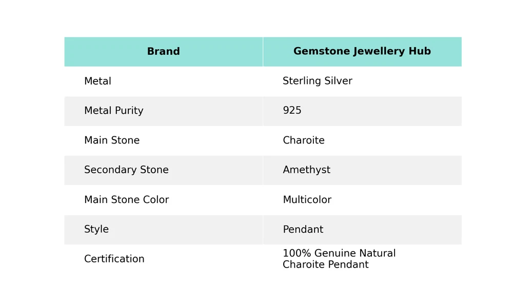 Welcome to Gemstonejewelleryhub Christmas Sale Charoite Stone Amethyst Birthday Pendant Jewelry Sterling Silver Handmade Pendant, Sterling Silver Pendant, Charoite Pendant, Handcrafted Pendant This beautiful pendant is a must-have for any jewelry collection. The unique charm design is perfect for any occasion, whether it be a wedding, anniversary, birthday, or engagement. The pendant features a multicolored charoite stone, which is set in a silver channel-set setting. Additionally, the pendant is handcrafted and engraved, making it a truly special piece. It is nickel-free and comes with a seller warranty, ensuring that you are getting a high-quality product. This pendant is perfect for those who are looking for something beautiful, lucky, or healing. Whether you are looking for a bohemian, ethnic, or halo piece, this pendant is sure to impress. SKU : MP-5704 Gemstone : Charoite Stone Shape : As Seen In Picture Metal Purity : 925 Sterling Silver Length : $Pendant Unit$ Width : $Pendant Unit$ ___________________________________________________________________ Shipping Handling - Charge - Free ( Condition apply ) Handling Time - One business day . Delivery Time - 3 to 23 Days ( Various on destination ) Postage service - (A.) India Post - Below $100 order which takes 11 to 23 days . (B.) USPS, Fedex, DHL , Aramax- Order above $100 which takes 3 to 7 days . _________________________________________________________________ Returns - 1. We provide a 100% Money Back Guarantee, excluding shipping costs, within 30 days from the date of item receipt. 2. The item must not be altered or damaged in any way shape or form. 3. Upon receiving these items your payment will be refunded. 4. Kindly reach out to us via email to obtain return instructions prior to initiating the return of merchandise. 5. Please allow up to 1 business day for all returns to receivecredit. 6. Sizing does not affect the return policy. _________________________________________________________________ Payment - We accept PayPal for Payment , should made within three days once buying or winning done , in case of late information expected . _________________________________________________________________ FAQ's - Q.(A) ARE THE ITEMS YOU ARE SELLING BRAND NEW? We exclusively offer brand-new products, refraining from the sale of pre-owned jewelry. Our entire jewelry collection is composed of 100% natural, conflict-free pieces. We do not engage in the trade of imitation or lab-grown gemstones and diamonds. Q.(B) WHAT ARE YOUR BUSINESS HOURS? Our business hours are Monday to Friday, 10:00AM to 6:00PM, excluding holidays. ________________________________________________________________ Gemstonejewelleryhub is dedicated to providing customers with exceptional handmade jewelry crafted to the highest standards of quality. We operate as both connoisseurs and manufacturers of artisanal jewelry, possessing a profound expertise in the art of elevating gemstones to perfectly align with any aesthetic preference. We are pleased to offer you the opportunity to create your own jewelry collection, adorned with authentic and exquisite natural gemstones. Our team of highly skilled artisans painstakingly crafts each individual jewelry piece, ensuring the creation of products with a unique identity that feature genuine gemstones. The jewelry articles presented on our website accurately depict the precise pieces that you will receive.