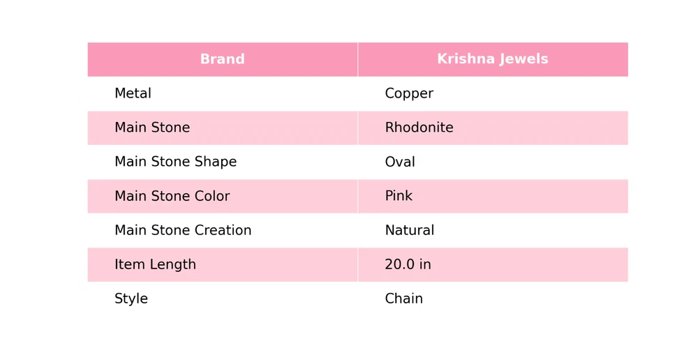 Note: Natural gemstones can vary slightly in design and color due to their unique formation. Welcome to KrishnaJewels123 Explore Our Handmade Jewelry Collection Product Details: SKU: JZN-123 Gemstone: Rhodonite Stone Shape: Oval Length: 20 Inches Width: Inches Sophisticated charm and enduring quality have long been hallmarks of our fashion collection. Valued for its elegance and versatility, our designs are staples in modern fashion, offering a perfect balance of beauty and durability. Our fashion jewelry combines timeless appeal with contemporary craftsmanship. Known for its hypoallergenic qualities and resistance to wear, each piece enhances the natural brilliance of gemstones, creating a stunning, refined look. Ideal For: Mother’s Day Father’s Day Promises Valentine’s Day Halloween Celebrations Christmas Gifts New Year Festivities Gifts for Mom Gifts for Her Need more details or personalized advice? Don’t hesitate to reach out! We’re here to assist you promptly. Each piece at KrishnaJewels123 is handcrafted with care and passion. As experts in creating exquisite fashion jewelry, we take pride in our meticulous craftsmanship. Our collection features a diverse range of designs, each enhanced by genuine gemstones and created by our skilled artisans. Thank you for visiting KrishnaJewels123. We hope you find joy in exploring our collection and enjoy your shopping experience with us!