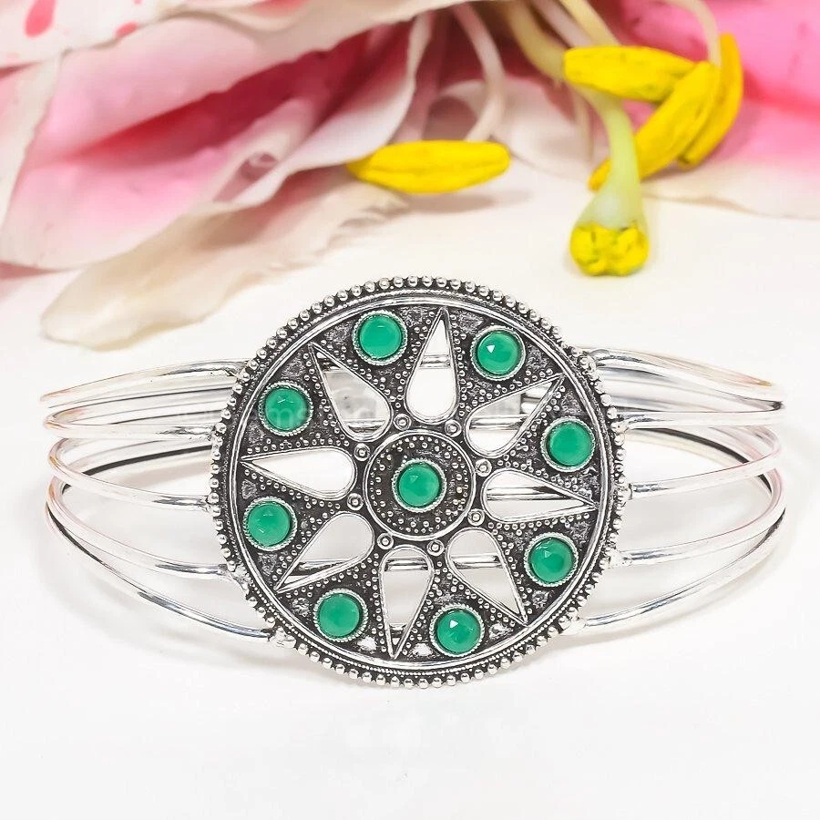 Welcome to Gemstone Treasure Hub Emerald Gemstone Cuff Adjustable 925 Sterling Silver Indian Jewelry For Women Handmade Cuff, Sterling Silver Cuff, Emerald Cuff, Handcrafted Cuff SKU : MC-1888 Gemstone : Emerald Stone Shape : As Seen In Picture Metal Purity : 925 Sterling Silver Cuff Length : Adjustable _________________________________________________________________ Shipping Handling - Charge - Free ( Condition apply ) Handling Time - One business day . Delivery Time - 3 to 23 Days ( Various on destination ) Postage service - (A.) India Post - Below $100 order which takes 11 to 23 days . (B.) USPS, Fedex, DHL , Aramax- Order above $100 which takes 3 to 7 days . _________________________________________________________________ Returns - 1. We provide a 100% Money Back Guarantee, excluding shipping costs, within 30 days from the date of item receipt. 2. The item must not be altered or damaged in any way shape or form. 3. Upon receiving these items your payment will be refunded. 4. Kindly reach out to us via email to obtain return instructions prior to initiating the return of merchandise. 5. Please allow up to 1 business day for all returns to receivecredit. 6. Sizing does not affect the return policy. _________________________________________________________________ Payment - We accept PayPal for Payment , should made within three days once buying or winning done , in case of late information expected . _________________________________________________________________ FAQ's - Q.(A) ARE THE ITEMS YOU ARE SELLING BRAND NEW? We exclusively offer brand-new products, refraining from the sale of pre-owned jewelry. Our entire jewelry collection is composed of 100% natural, conflict-free pieces. We do not engage in the trade of imitation or lab-grown gemstones and diamonds. Q.(B) WHAT ARE YOUR BUSINESS HOURS? Our business hours are Monday to Friday, 10:00AM to 6:00PM, excluding holidays. ________________________________________________________________ Gemstone Treasure Hub is dedicated to providing customers with exceptional handmade jewelry crafted to the highest standards of quality. We operate as both connoisseurs and manufacturers of artisanal jewelry, possessing a profound expertise in the art of elevating gemstones to perfectly align with any aesthetic preference. We are pleased to offer you the opportunity to create your own jewelry collection, adorned with authentic and exquisite natural gemstones. Our team of highly skilled artisans painstakingly crafts each individual jewelry piece, ensuring the creation of products with a unique identity that feature genuine gemstones. The jewelry articles presented on our website accurately depict the precise pieces that you will receive.