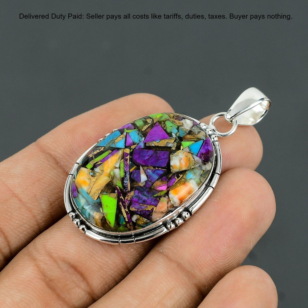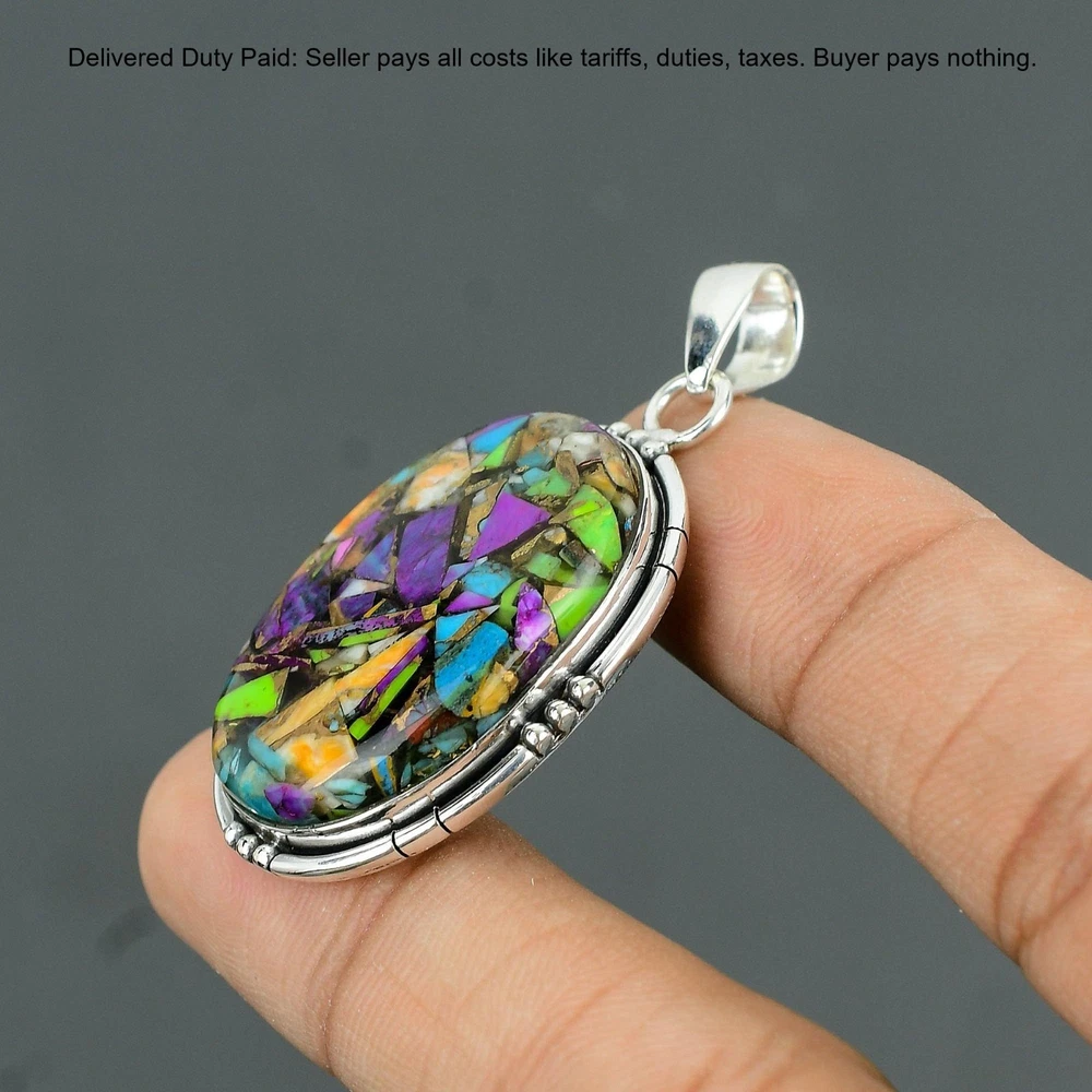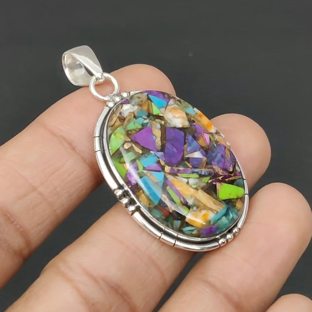Welcome to Madonna Jewels Christmas Sale Fiesta Kingman Turquoise Gemstone Pendant Jewelry Sterling Silver Handmade Pendant, Sterling Silver Pendant, Fiesta Kingman Turquoise Pendant, Handcrafted Pendant SKU : VP-212 Gemstone : Fiesta Kingman Turquoise Stone Shape : Oval Metal Purity : 925 Sterling Silver Length : 55 Millimeters Width : 29 Millimeters Silver Jewelry is a popular choice for many people due to its unique properties and numerous benefits. Here are some of the key properties and benefits of wearing silver jewelry: Properties: Durability: Silver is a durable metal that can withstand regular wear and tear. Malleability: Silver is highly malleable, which means it can be easily shaped and molded into various designs. Conductivity: Silver is an excellent conductor of heat and electricity. Anti-bacterial: Silver has natural anti-bacterial properties, which can help prevent the growth of harmful bacteria. Benefits: Aesthetic appeal: Silver jewelry is known for its beauty and versatility, and can be worn with a variety of outfits and styles. Hypoallergenic: Silver is generally hypoallergenic, which means it is unlikely to cause an allergic reaction in most people. Healing properties: Some people believe that wearing silver jewelry can help with various physical and emotional conditions, such as arthritis, anxiety, and depression. Spiritual significance: Silver has been used in various cultures for its spiritual and symbolic significance, and wearing silver jewelry can help to connect with these traditions. Investment value: Silver is a precious metal that retains its value over time, and investing in silver jewelry can be a smart financial decision. Overall, silver jewelry offers a unique combination of beauty, durability, and benefits, making it a popular choice for people around the world. For Mother's Day Gift For Father's Day Gift For Promise For Valentine' Day For Halloween Party For Christmas Day Gift For New Year Party For Mom For Her If you can't find the information you need or need some advice for your design? Feel free to contact us. We are fast to reply :) All our work is made by hand with Love and Care in our workshop Thank you so much for visiting and hope you enjoy shopping with us Madonna Jewels is dedicated to providing customers with high-quality sterling silver jewelry. As a manufacturer of handmade jewelry, we offer an extensive range of silver gemstone jewelry that demonstrates our exceptional craftsmanship. We are skilled in adorning gemstones to complement any style, and we give you the freedom to design your own jewelry collection with dazzling, natural, and genuine gemstones. Our talented craftsmen carefully handcraft each jewelry piece, ensuring that it is unique and made with authentic gemstones. The jewelry item you see on our website is precisely the same one you will receive.