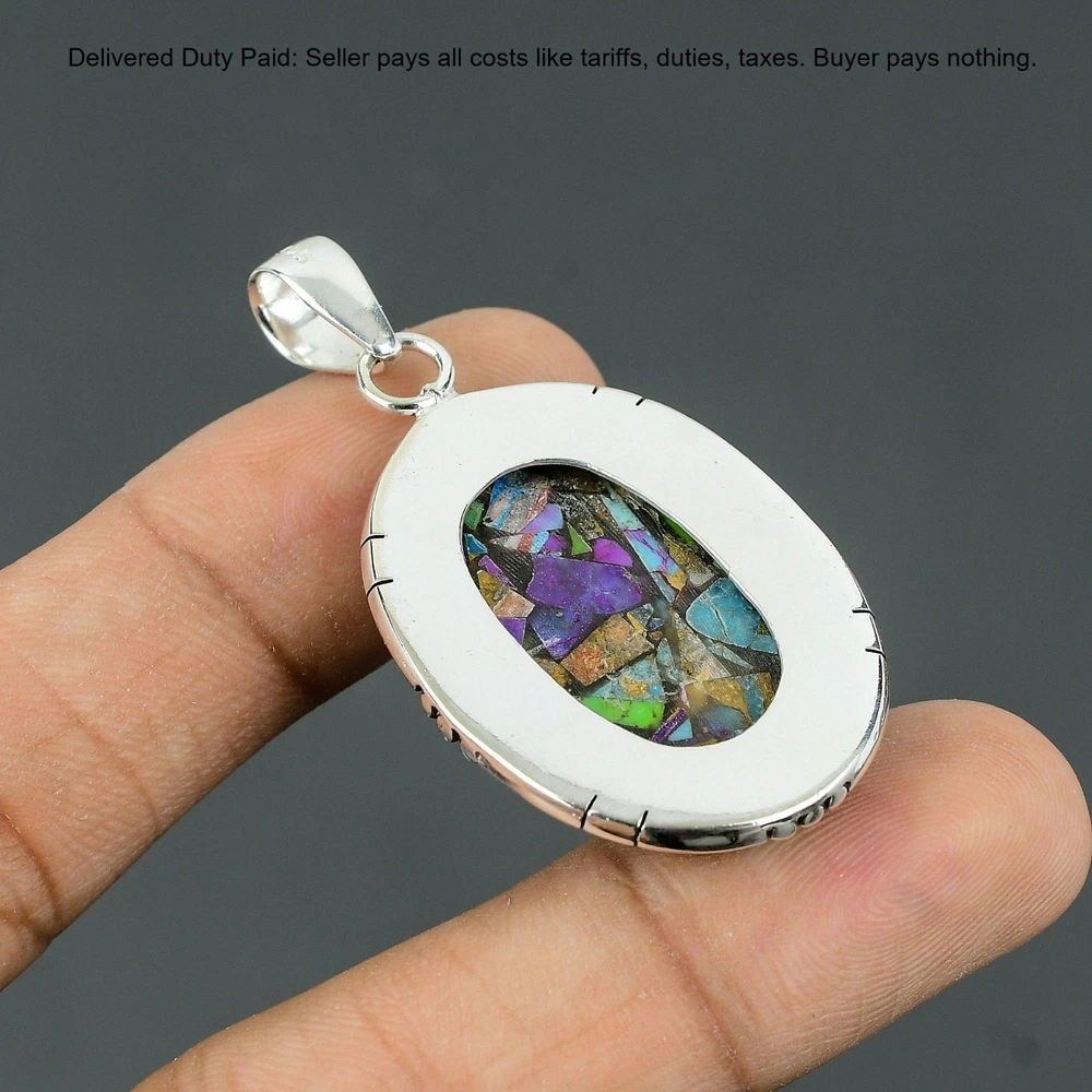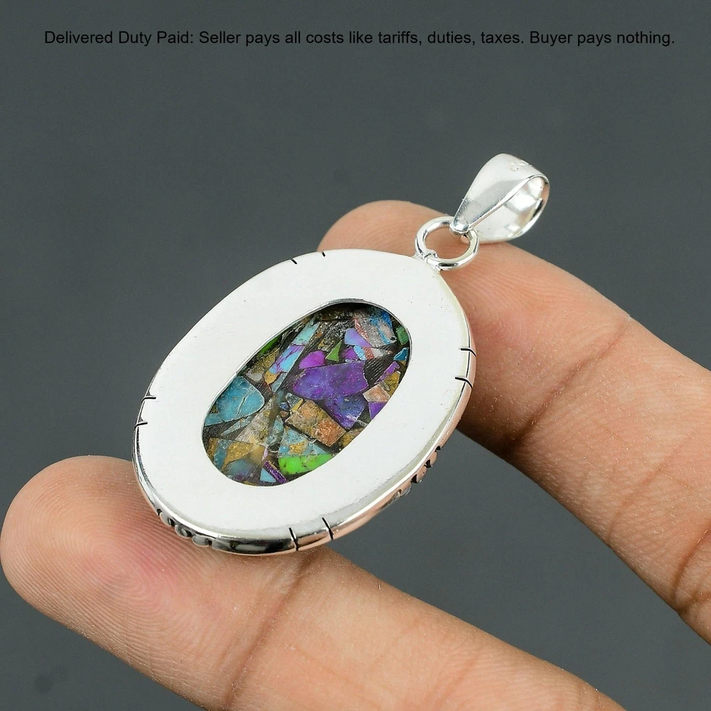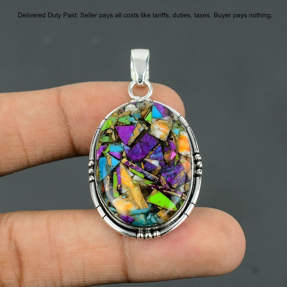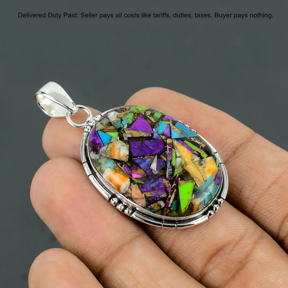 Welcome to Madonna Jewels Christmas Sale Fiesta Kingman Turquoise Gemstone Pendant Jewelry Sterling Silver Handmade Pendant, Sterling Silver Pendant, Fiesta Kingman Turquoise Pendant, Handcrafted Pendant SKU : VP-212 Gemstone : Fiesta Kingman Turquoise Stone Shape : Oval Metal Purity : 925 Sterling Silver Length : 55 Millimeters Width : 29 Millimeters Silver Jewelry is a popular choice for many people due to its unique properties and numerous benefits. Here are some of the key properties and benefits of wearing silver jewelry: Properties: Durability: Silver is a durable metal that can withstand regular wear and tear. Malleability: Silver is highly malleable, which means it can be easily shaped and molded into various designs. Conductivity: Silver is an excellent conductor of heat and electricity. Anti-bacterial: Silver has natural anti-bacterial properties, which can help prevent the growth of harmful bacteria. Benefits: Aesthetic appeal: Silver jewelry is known for its beauty and versatility, and can be worn with a variety of outfits and styles. Hypoallergenic: Silver is generally hypoallergenic, which means it is unlikely to cause an allergic reaction in most people. Healing properties: Some people believe that wearing silver jewelry can help with various physical and emotional conditions, such as arthritis, anxiety, and depression. Spiritual significance: Silver has been used in various cultures for its spiritual and symbolic significance, and wearing silver jewelry can help to connect with these traditions. Investment value: Silver is a precious metal that retains its value over time, and investing in silver jewelry can be a smart financial decision. Overall, silver jewelry offers a unique combination of beauty, durability, and benefits, making it a popular choice for people around the world. For Mother's Day Gift For Father's Day Gift For Promise For Valentine' Day For Halloween Party For Christmas Day Gift For New Year Party For Mom For Her If you can't find the information you need or need some advice for your design? Feel free to contact us. We are fast to reply :) All our work is made by hand with Love and Care in our workshop Thank you so much for visiting and hope you enjoy shopping with us Madonna Jewels is dedicated to providing customers with high-quality sterling silver jewelry. As a manufacturer of handmade jewelry, we offer an extensive range of silver gemstone jewelry that demonstrates our exceptional craftsmanship. We are skilled in adorning gemstones to complement any style, and we give you the freedom to design your own jewelry collection with dazzling, natural, and genuine gemstones. Our talented craftsmen carefully handcraft each jewelry piece, ensuring that it is unique and made with authentic gemstones. The jewelry item you see on our website is precisely the same one you will receive.