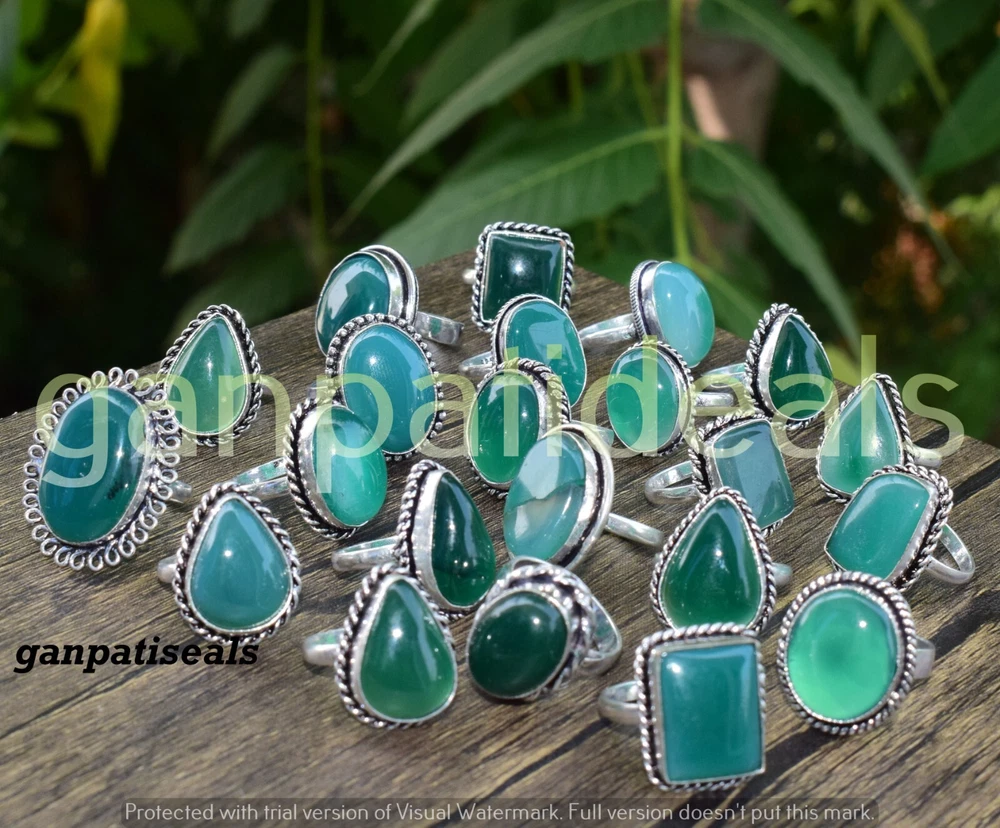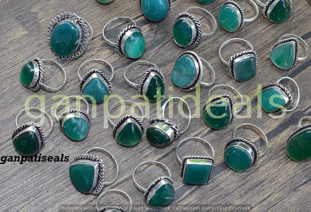 Christmas Sale ! Green Onyx Gemstone Ring 5pc Wholesale Lot 925 Silver Plated