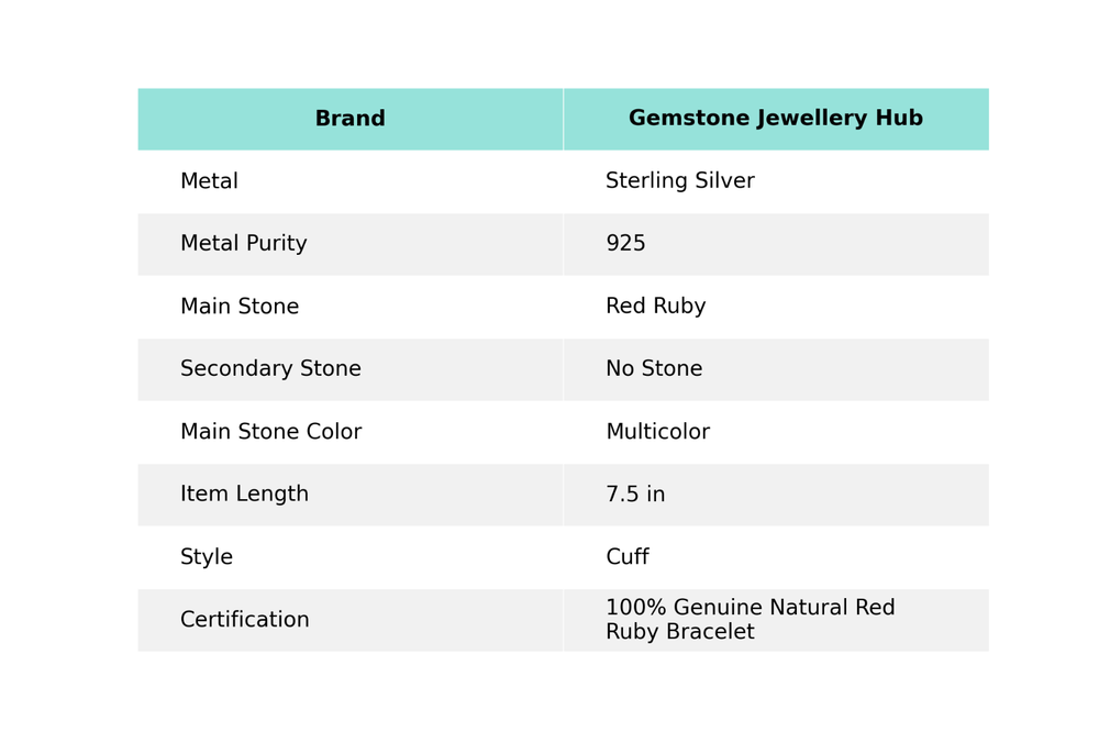 Welcome to Gemstone Treasure Hub Gift For Her 925 Sterling Silver Red Ruby Gemstone Jewelry Cuff Adjustable Handmade Cuff, Sterling Silver Cuff, Red Ruby Cuff, Handcrafted Cuff SKU : MC-1878 Gemstone : Red Ruby Stone Shape : As Seen In Picture Metal Purity : 925 Sterling Silver Cuff Length : Adjustable _________________________________________________________________ Shipping Handling - Charge - Free ( Condition apply ) Handling Time - One business day . Delivery Time - 3 to 23 Days ( Various on destination ) Postage service - (A.) India Post - Below $100 order which takes 11 to 23 days . (B.) USPS, Fedex, DHL , Aramax- Order above $100 which takes 3 to 7 days . _________________________________________________________________ Returns - 1. We provide a 100% Money Back Guarantee, excluding shipping costs, within 30 days from the date of item receipt. 2. The item must not be altered or damaged in any way shape or form. 3. Upon receiving these items your payment will be refunded. 4. Kindly reach out to us via email to obtain return instructions prior to initiating the return of merchandise. 5. Please allow up to 1 business day for all returns to receivecredit. 6. Sizing does not affect the return policy. _________________________________________________________________ Payment - We accept PayPal for Payment , should made within three days once buying or winning done , in case of late information expected . _________________________________________________________________ FAQ's - Q.(A) ARE THE ITEMS YOU ARE SELLING BRAND NEW? We exclusively offer brand-new products, refraining from the sale of pre-owned jewelry. Our entire jewelry collection is composed of 100% natural, conflict-free pieces. We do not engage in the trade of imitation or lab-grown gemstones and diamonds. Q.(B) WHAT ARE YOUR BUSINESS HOURS? Our business hours are Monday to Friday, 10:00AM to 6:00PM, excluding holidays. ________________________________________________________________ Gemstone Treasure Hub is dedicated to providing customers with exceptional handmade jewelry crafted to the highest standards of quality. We operate as both connoisseurs and manufacturers of artisanal jewelry, possessing a profound expertise in the art of elevating gemstones to perfectly align with any aesthetic preference. We are pleased to offer you the opportunity to create your own jewelry collection, adorned with authentic and exquisite natural gemstones. Our team of highly skilled artisans painstakingly crafts each individual jewelry piece, ensuring the creation of products with a unique identity that feature genuine gemstones. The jewelry articles presented on our website accurately depict the precise pieces that you will receive.