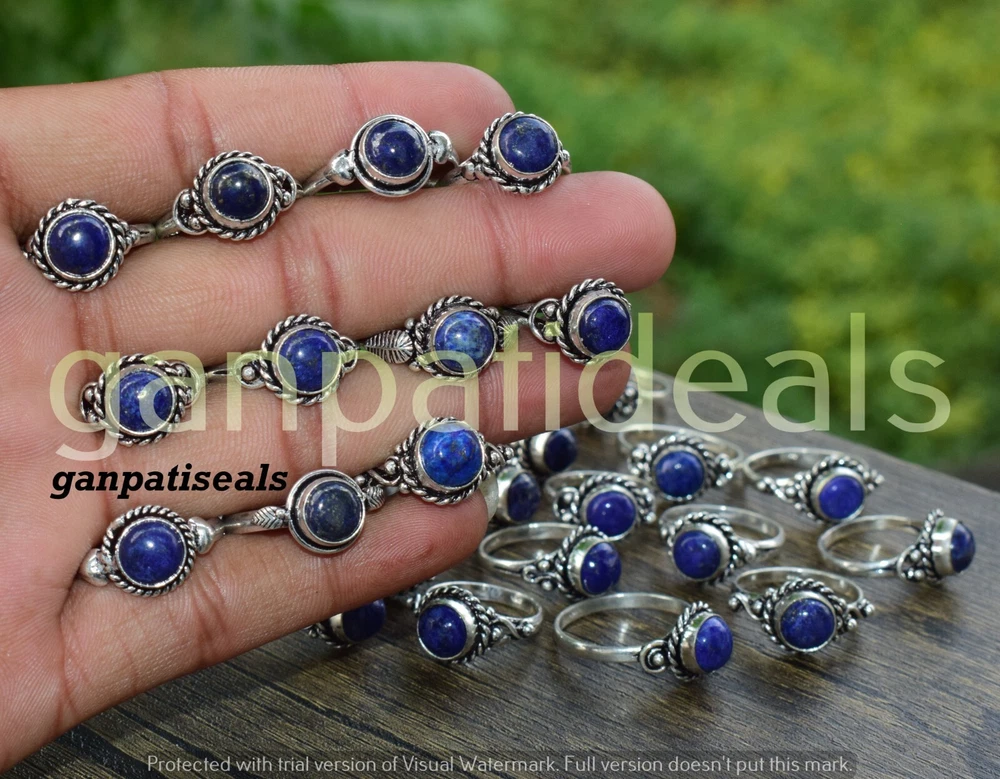 gtin13: Dose Not Apply Signed: Yes Handmade: Yes Main Stone Shape: Mix Shape Brand: Handmade Gemstone Clarity Grade: Eye Clean Country/Region of Manufacture: India Antique: Yes Vintage: No Seller Notes: “I am a wholesaler, I sell goods at wholesale rates, contact me through eBay” Shape: Mix Shape Style: Charm Secondary Stone: Unknown Number of Gemstones: 1 Type: Fashion Ring Color: Same As Picture Main Stone: Lapis Lazuli Material: Stone Main Stone Creation: Lab-Created/Cultured UPC: Dose Not Apply Customized: No Theme: Art, Beauty Wholesale: Yes Country of Origin: India Main Stone Color: Blue Cut Grade: Excellent Base Metal: Brass Metal: Silver Plated Occasion: Anniversary, Birthday, Christmas, Engagement, Mother's Day, Valentine's Day Ring Size: Mix Main Stone Treatment: Not Enhanced Personalize: Yes Band Width: Mix Setting Style: Cluster Metal Purity: 925