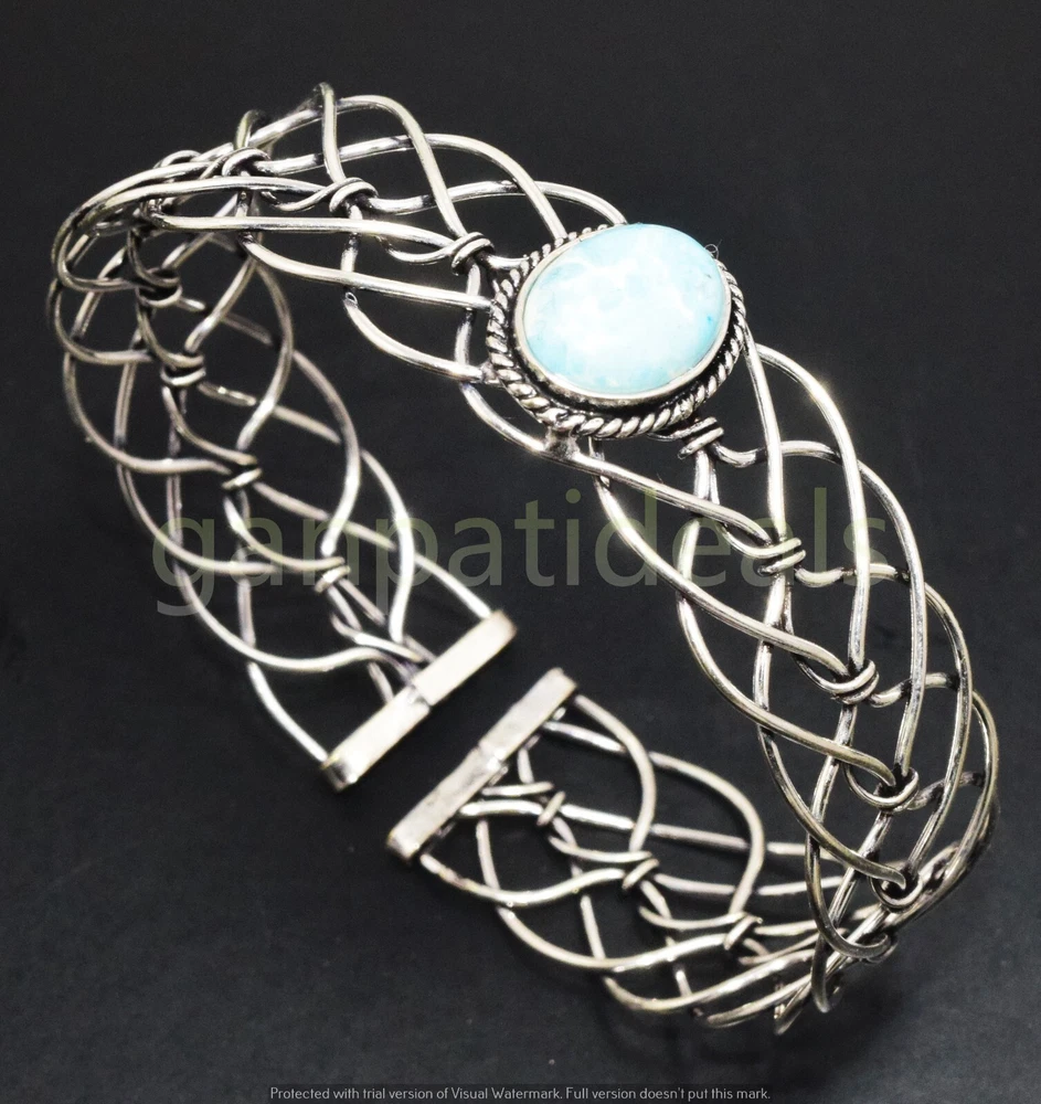 Christmas Sale ! Larimar Gemstone 1pcs Cuff Bangle Lot 925 Silver Plated