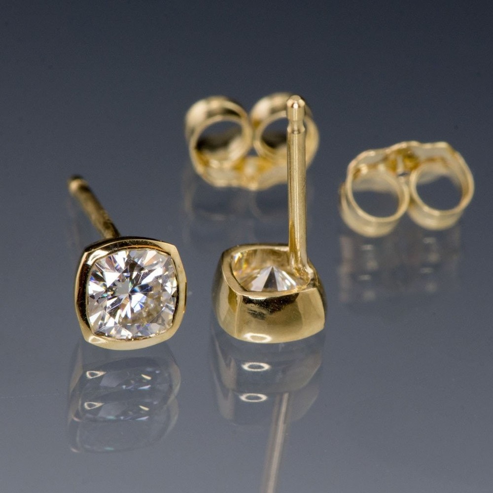 Solid 14k Yellow Gold Flat Ball Stud Push Back Earrings