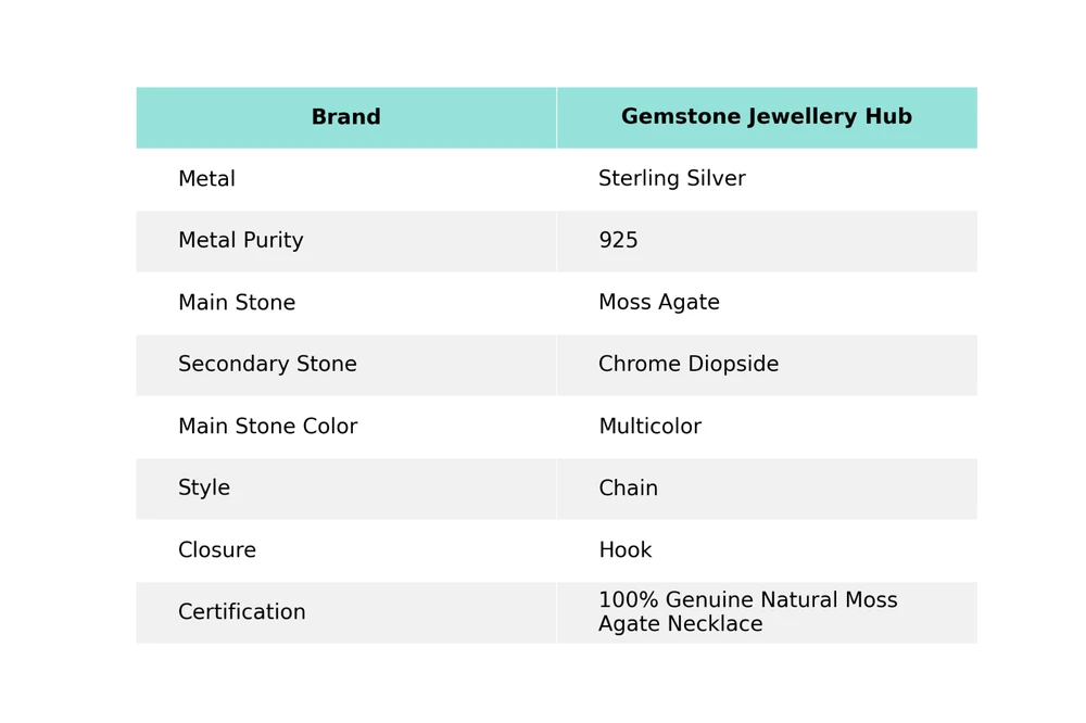 Welcome to Gemstone Treasure Hub Moss Agate Gemstone Indian Jewelry 925 Sterling Silver Chain Necklace For Women Handmade Necklace, Sterling Silver Necklace, Moss Agate Necklace, Handcrafted Necklace SKU : MN-1311 Gemstone : Moss Agate Stone Shape : As Seen In Picture Metal Purity : 925 Sterling Silver Necklace Length: 18 Inches Adjustable : ___________________________________________________________________ Shipping Handling - Charge - Free ( Condition apply ) Handling Time - One business day . Delivery Time - 3 to 23 Days ( Various on destination ) Postage service - (A.) India Post - Below $100 order which takes 11 to 23 days . (B.) USPS, Fedex, DHL , Aramax- Order above $100 which takes 3 to 7 days . _________________________________________________________________ Returns - 1. We provide a 100% Money Back Guarantee, excluding shipping costs, within 30 days from the date of item receipt. 2. The item must not be altered or damaged in any way shape or form. 3. Upon receiving these items your payment will be refunded. 4. Kindly reach out to us via email to obtain return instructions prior to initiating the return of merchandise. 5. Please allow up to 1 business day for all returns to receivecredit. 6. Sizing does not affect the return policy. _________________________________________________________________ Payment - We accept PayPal for Payment , should made within three days once buying or winning done , in case of late information expected . _________________________________________________________________ FAQ's - Q.(A) ARE THE ITEMS YOU ARE SELLING BRAND NEW? We exclusively offer brand-new products, refraining from the sale of pre-owned jewelry. Our entire jewelry collection is composed of 100% natural, conflict-free pieces. We do not engage in the trade of imitation or lab-grown gemstones and diamonds. Q.(B) WHAT ARE YOUR BUSINESS HOURS? Our business hours are Monday to Friday, 10:00AM to 6:00PM, excluding holidays. ________________________________________________________________ Gemstone Treasure Hub is dedicated to providing customers with exceptional handmade jewelry crafted to the highest standards of quality. We operate as both connoisseurs and manufacturers of artisanal jewelry, possessing a profound expertise in the art of elevating gemstones to perfectly align with any aesthetic preference. We are pleased to offer you the opportunity to create your own jewelry collection, adorned with authentic and exquisite natural gemstones. Our team of highly skilled artisans painstakingly crafts each individual jewelry piece, ensuring the creation of products with a unique identity that feature genuine gemstones. The jewelry articles presented on our website accurately depict the precise pieces that you will receive.