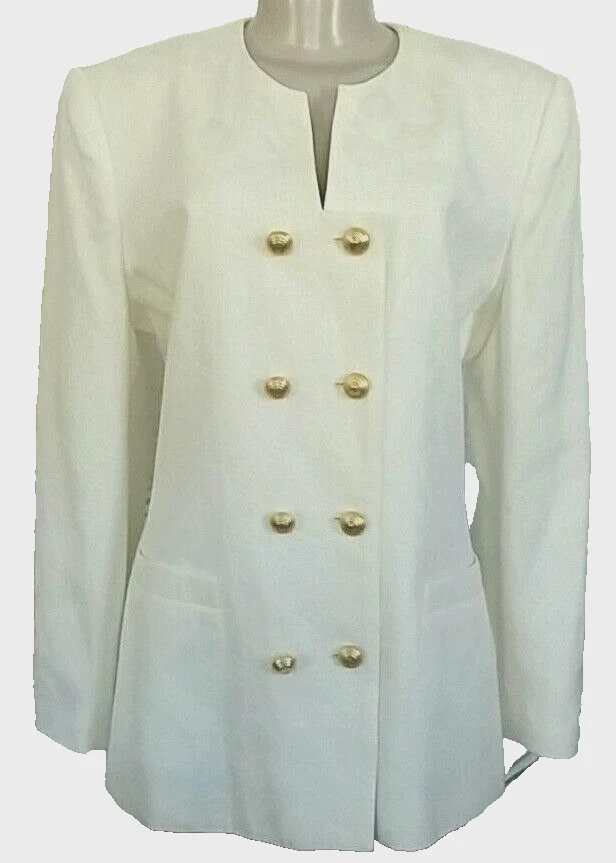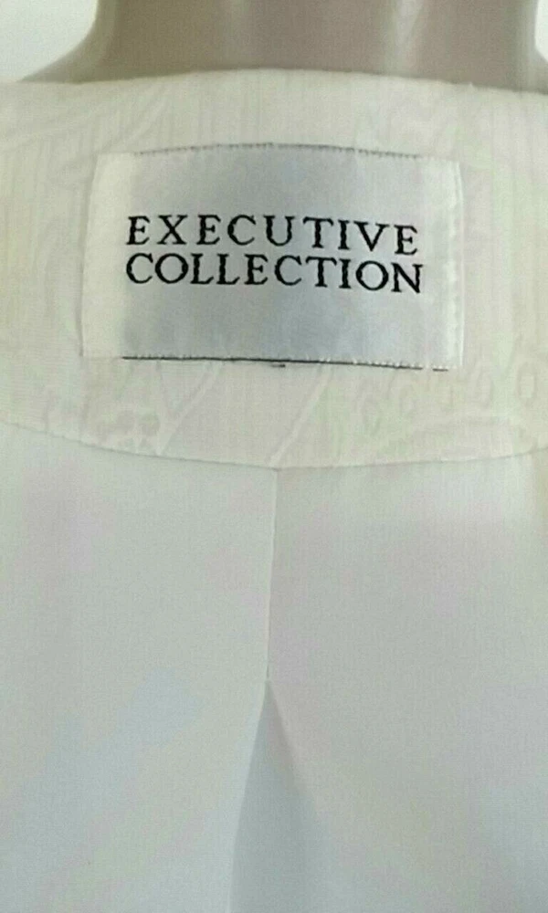 EXECUTIVES COLLECTION Women's White Jacket Double Breasted Lining L/14 NEW New Condition - Size L (14/16) Chest 44 " Waist 18.5 " Sleeve 25 " Length 29 " Double-breasted jacket Lined 2 pockets Colors may vary slightly due to differences in computer screen technology and/or settings Item is sold as is; Item will be carefully packed and fast delivery Cleanliness - a non-smoking and pet-free home Shipped with USPS Ground Advantage