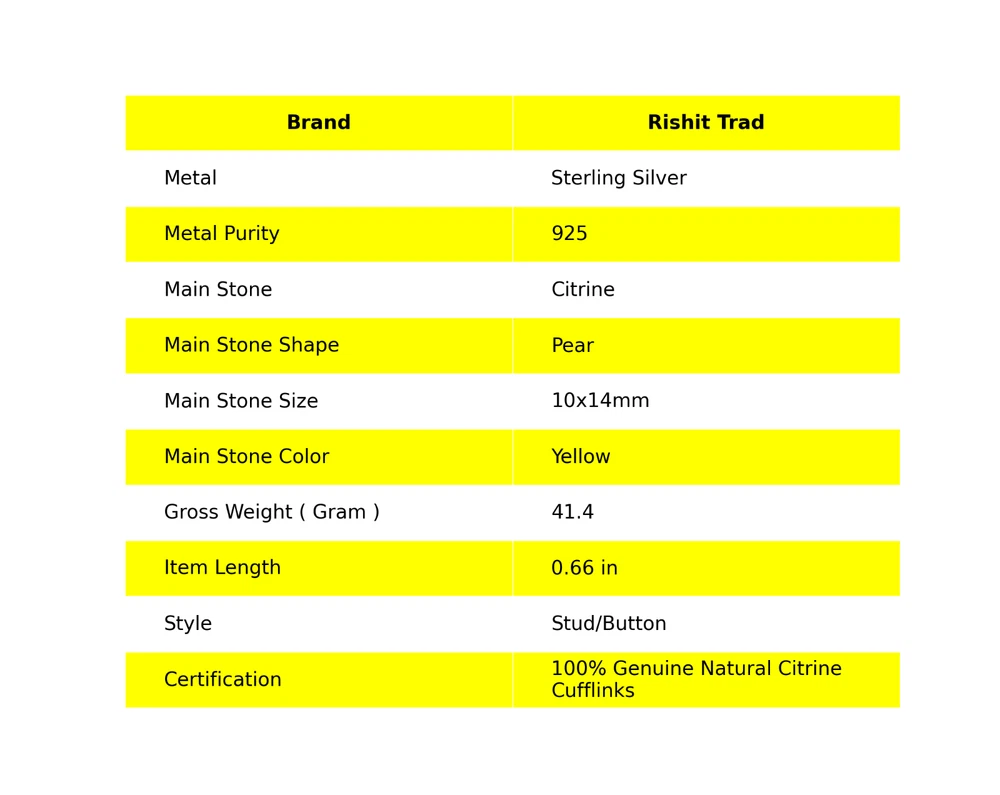 Life is stylish and beautiful when you have this 925 Sterling Silver Cufflinks which is indeed special. Wear your heart with the sparkling glory of Citrine that showcases a sharp youthful vibe. A finest pick to seal your love. ---------------------------------------------------- ------------ Welcome to Our Shop Rishittrad ---------------------------------------------------- ------------ Description:- SKU :- CL-6-3 Metal :- Sterling Silver Metal Purity :- 925 Gemstone :- Citrine Gemstone Color :- Yellow Gemstone Shape :- Pear Gemstone Origin :- Setting :- Channel-Set Cufflink Lenght : - 0.66 Inches ---------------------------------------------------- ------------ -------- ------------ Elegant Birthday Tribute:- Discover the essence of sophistication with our Birthday Radiance collection. Crafted with exquisite attention to detail, each piece embodies the timeless elegance and symbolic significance of birthdays. Craftsmanship Excellence:- Meticulously fashioned from premium 925 sterling silver, our jewelry pieces boast a classic and enduring design. The rich tones of natural gemstones complement the silver setting, creating a captivating harmony that resonates with wisdom and truth. Symbol of Personal Growth:- Gift with intention and meaning. Our Emblem of Wisdom pieces symbolize heartfelt wishes for personal growth and enlightenment on the recipient's special day, making it a cherished gesture of love and appreciation. Versatile Elegance:- Measuring at 1.2 inches, our creations seamlessly blend into any ensemble, offering both daily wearability and the ability to elevate sophisticated looks for special occasions. Their adaptable design ensures they become treasured additions to any jewelry collection. Thoughtful Expression of Love:- Surprise your beloved with a gift that transcends mere adornment. Our Natural Gemstone 925 Sterling Silver collection is a stylish and thoughtful token, exuding elegance and emotion while conveying warmest wishes with enduring grace. Exquisite Presentation:- Delight in the joy of gifting with our meticulously presented pieces, elegantly housed in an exquisite gift box. Make their birthday truly memorable by presenting them with a gift that captures the allure and timeless elegance of sterling silver. -------------------------- Image Policy----------------------------- All images are captured in natural lighting. The product showcased is the exact item you'll receive. -------------------------- Delivery Policy-------------------------- Standard Shipping typically takes 15-25 days, depending on your location. For expedited shipping, additional charges will apply. --------------------------- Product Policy--------------------------- You will receive the exact product depicted in the photos. All items are meticulously handcrafted. ------------------------------ Order Policy------------------------------ We welcome orders from around the globe. Custom orders are also accepted. Bulk orders are available upon request. Should you have any queries about our products, please don't hesitate to reach out. Upon receiving your product, we'd appreciate your feedback. ⋆⋆✦✧✦⋆⋆⋆⋆✦✧✦⋆⋆⋆⋆✦✧✦⋆⋆⋆⋆✦✧✦⋆⋆⋆⋆✦✧✦⋆⋆⋆⋆✦✧✦⋆⋆⋆⋆✦✧✦⋆⋆ "Discover a captivating collection of handcrafted gemstone jewelry at our boutique." https://www.ebay.com/str/rishittrad0 ♥ Thank you for choosing us ♥