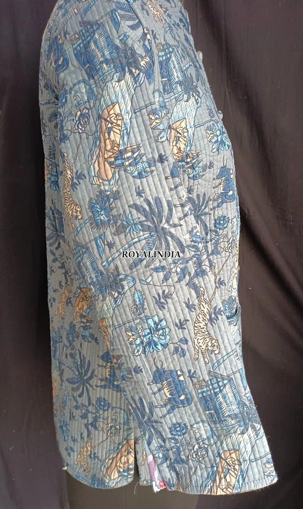 Description Item ~ Indian Handmade Quilted Cotton Reversible Jacket Coat etc. Color ~ Multi Size ~ L , XL , XXL , 3XL Jacket Length ~ 26" Inch ( 65 CM Approx ) Sleeve Length ~ 23 inches (58 Cm Approx.). Pockets ~ Yes (Two Pockets In Front ). Fabric ~ 100% Cotton Print ~ Block Print. Color ~ We always do our best to take good quality photographs to describe the products in detail. But due to Camera flash and screen resolution Images and their color may slightly vary. Condition ~ New & Good Condition. Wash Care ~ Wash Your Bathrobe By Hand Wash, Machine Wash & Dry Clean. (Do Not Use Brush). *Shipping Policy 1. We Are ship our Products with FedEx, DHL Express, Aramex, UPS, TNT etc. 2. We Provide the tracking Number same time when dispatch the orders. So you can easily track your orders. 3. Product Delivery time depends on shipping service type. Normally it’s take about 3-7 business days. 4. All custom duty and taxes are buyer's responsibility and will be paid by buyer. *Return Policy 1. As per the eBay policy, you have 3 days to inform us and 30 days to return it from the date of receiving. If this item is in your possession more than 7 days, it is considered USED and we will not be in the position to give you a refund or replacements. 2. All returned items MUST be in the original packaging, not be altered, damaged or wrong item and you must provide us the shipping tracking number, specific reason for the return. 3. Return goods charges would be paid by the buyer only. *Feedback Policy Our aim is delivering 100% customer satisfaction. We ship the product after performing the high quality check. After receiving products please move to give us positive feedback. Your feedback is valuable for us in next selling. In case of any issue please give one chance to us. And don't go directly for negative feedback. We will delivers you 100 % solution as possible and resolve your problem. *Other Products 1. We Are Also Selling Tapestry Wall Hanging, Cushion Cover, Pillow Cover, Pouf Cover, Screen Print & Hand Block Kantha Quilt Bedspreads/Blankets and many more under Home Decor Category. 2. We Are Also Selling Bathrobe, Kimono, Kaftans, Night Dress, Skirts & Trousers, Palazzo, Gown and many more under Women’s Clothing Category. 3. We Are Also Selling Screen Print Fabrics & Hand block Print Fabrics. Note: - !! Wholesale & Customize orders are appreciated!!