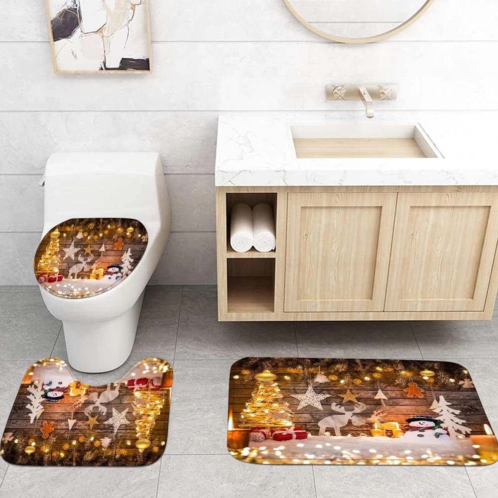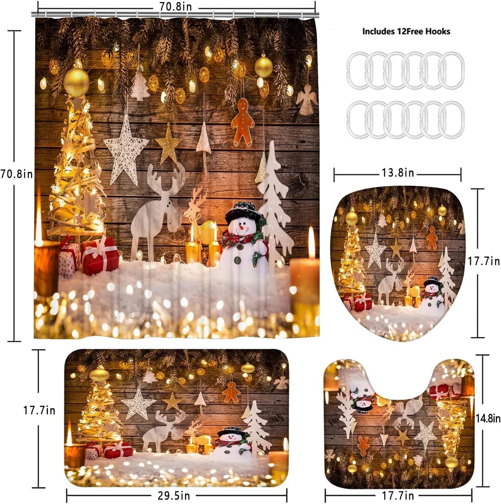 Store New Arrivals Add to Favorite View Feedback Contact Christmas Shower Curtain Set - 4-Piece Holiday Bathroom Decor with Rugs & Hooks Christmas Shower Curtain Set - 4-Piece Holiday Bathroom Decor with Rugs & Hooks Product Description: Festive Christmas Bathroom Decor Transform your bathroom into a winter wonderland with this beautifully designed 4-piece Christmas shower curtain set. Featuring vibrant Christmas tree, snowman, and reindeer designs illuminated by string lights and candles, this set creates a warm, festive atmosphere. The creative pattern on a wood grain background instantly refreshes your bathroom decor, making it the perfect addition to your holiday decorations. The high-definition print ensures vivid colors that won’t fade over time, even with repeated use. Waterproof and Durable Shower Curtain Made from 100% polyester fabric, the shower curtain is waterproof, ensuring water dries quickly after each use. Its sturdy construction features reinforced grommets for easy hanging, while the weighted bottom hem keeps the curtain perfectly draped and in place. The fabric is designed to withstand daily use, adding both style and functionality to your bathroom. Comfortable and Practical Bathroom Rugs This set includes soft, flannel bathroom rugs that are both comfortable and practical. The rugs are designed to quickly absorb drips, keeping your bathroom floors dry and clean. The non-slip backing ensures they stay securely in place, preventing any accidents. The set also includes a toilet seat cushion with an elastic band to keep it fixed in place. Complete Set with Free Hooks The 4-piece set comes complete with everything you need to fully decorate your bathroom for the holidays. It includes 12 durable hooks for easy installation, making it simple to hang the shower curtain. Whether you're hosting guests or enjoying the holiday season in comfort, this set has you covered. Perfect Size for Most Bathrooms This Christmas shower curtain set is designed to fit most home bathrooms, making it a versatile addition to your holiday decorations. The set includes: Shower Curtain : 70.8" L x 70.8" W Non-Slip Flannel Bathroom Rug : 29.5" L x 17.7" W U-Shaped Rug : 17.7" L x 14.8" W Toilet Lid Cover : 17.7" L x 13.8" W Features: Holiday Design : Features a festive Christmas tree, snowman, reindeer, and string lights. High-Quality Material : 100% polyester fabric shower curtain, flannel bathroom rugs, and a toilet seat cushion. Waterproof & Quick-Drying : Keeps your bathroom clean and dry with a fast-drying, waterproof curtain. Non-Slip Rugs : Bathroom rugs with a non-slip design for safety and comfort. Easy Installation : Comes with 12 hooks for quick setup, reinforced head grommets, and a weighted bottom hem for perfect drape. Versatile Size : Fits most home bathrooms with multiple rug sizes and a spacious shower curtain. Frequently Asked Questions (FAQs): What size is the shower curtain? The shower curtain measures 70.8 inches in length and 70.8 inches in width. Is the shower curtain waterproof? Yes, the shower curtain is made from waterproof polyester fabric to keep your bathroom dry. What comes with the 4-piece set? The set includes a shower curtain, 12 hooks, a non-slip bathroom rug, a U-shaped rug, and a toilet lid cover. Are the bathroom rugs non-slip? Yes, the bathroom rugs have a non-slip bottom to ensure they stay securely in place. How do I install the shower curtain? The set includes 12 hooks, and the reinforced grommets make it easy to hang the shower curtain. Is the shower curtain set machine washable? Yes, the polyester fabric can be washed in the machine for easy care. What size are the rugs? The non-slip flannel bathroom rug is 29.5"L x 17.7"W, the U-shaped rug is 17.7"L x 14.8"W, and the toilet lid cover is 17.7"L x 13.8"W. Can I use the toilet seat cover on any lid? The toilet lid cover is adjustable with an elastic band for a secure fit on most toilet lids. Is the design fade-resistant? Yes, the high-definition print ensures vibrant colors that resist fading over time. Can I use this set in a small bathroom? Yes, the set is designed to fit most bathrooms and can work in both large and small spaces. Item model number ZP001-A Style Art Deco Weave Type Machine made Number of Items 5 Pattern Paisley Package Weight 0.75 Kilograms Theme Christmas Opacity Blackout Unit Count 1.0 Count Room Type Bathroom Product Dimensions 70.8"L x 70.8"W Material Polyester Top Style Grommet Model Name 4 Seasons Winter Specific Uses For Product Shower, Decorative Included Components Hook, Grommet Curtain Form Shower Curtain Water Resistance Level Waterproof Item Weight 1.65 pounds Compatible with Rod Size 1.18 Inches Occasion Christmas Special Feature Waterproof Hanging Method Grommet Color Christmas Recommended Uses For Product Indoor Fabric Type 100% Polyester Product Care Instructions Machine Wash, Hand Wash Only Size 70.8"W x 70.8"L (Pack of 5) PRODUCT DIMENSIONS : 70.8 "w x 70.8 "w. Weight: 1.65 lb About Us Welcome to Perishey, your premier destination for high-quality products at unbeatable prices. Our commitment to excellence ensures that you receive top-notch service and premium items across a variety of categories. Our professional customer support team is always ready to assist you with any inquiries or needs, ensuring a seamless shopping experience. We take pride in serving you and strive to bring a smile to your face with our exceptional service and products. Visit our eBay store to explore our full range of offerings and discover the great deals we have in store for you. Thank you for choosing Laelegencia. Payment policy We have eBay Managed Payments, allowing you to pay with any payment method that eBay accepts. Please ensure that your shipping addresses are accurate. Immediate payment is required before we can send out your package. Shipping policy We are always working hard to ensure your package arrives as soon as possible. Please understand that some factors like weather, high po