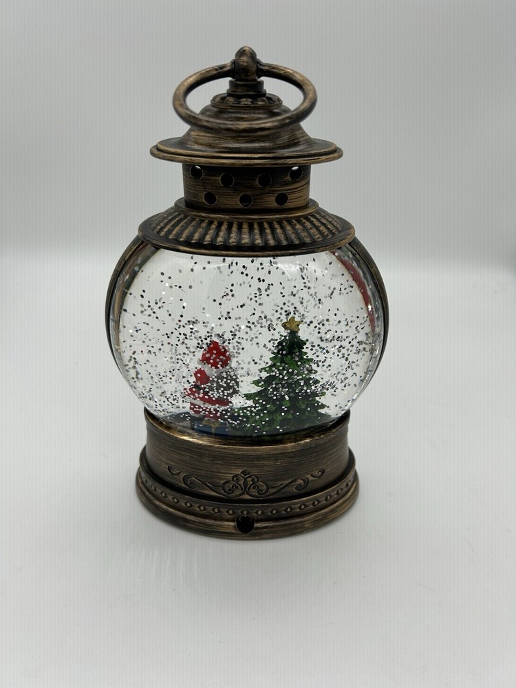 Christmas Snow Water Lantern Glitter Light Up Musical Snow Globe Santa and Puppy When turned on a warm LED light shines on the figurine and swirling glitter to give the Christmas globe a whimsical look for the Christmas Holiday Season. The switch is on the base and there are three control modes: Light up with music/off/Light up only. Powered by USB cable (included), the snow globe can also operate with 3 AAA batteries so it can be placed anywhere you want to add warm ambiance.