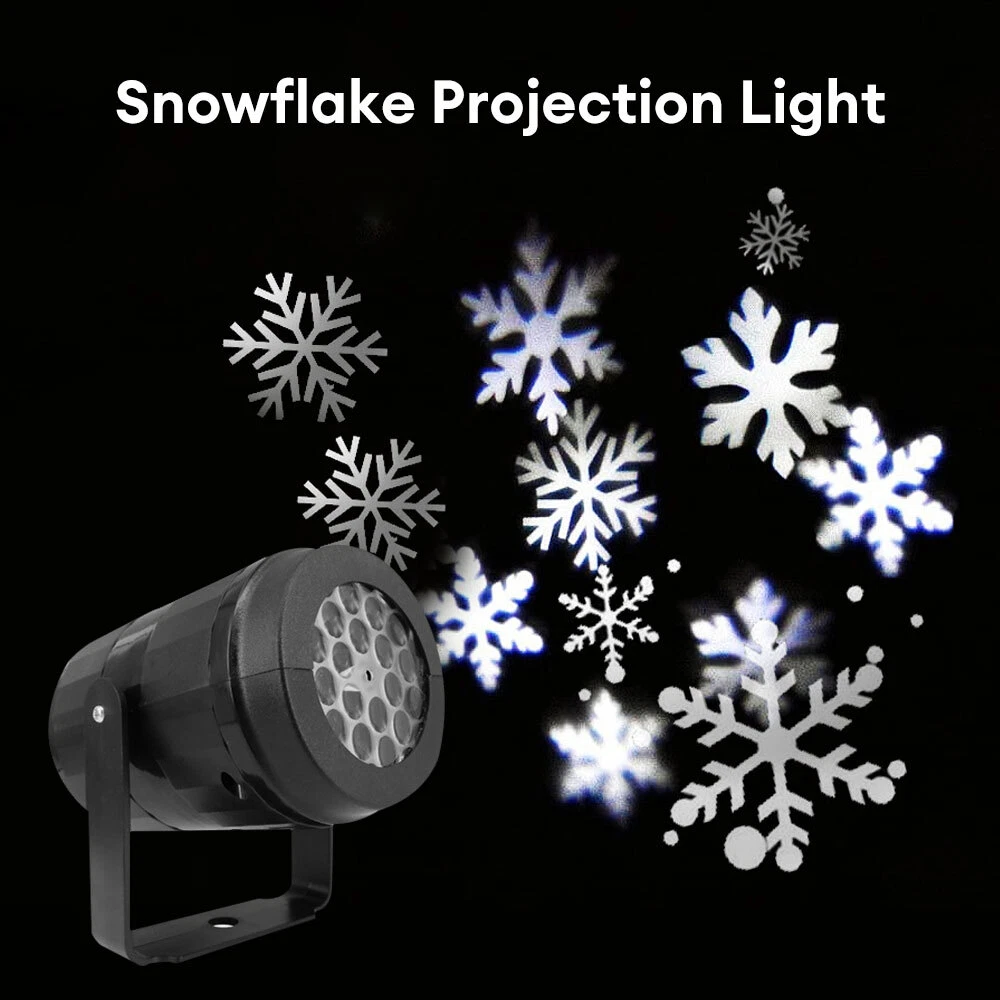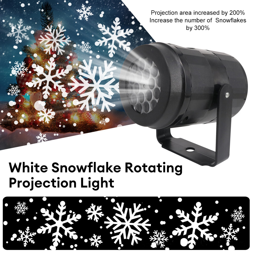 Description 1: Perfect for home decorative lights, you can install it in your garden, yard and other places, bring fun to your home, party, festival, Christmas, Halloween. 2: Projection effect, both static and dynamic, the dynamic movement shows the pattern of snowflakes falling. 3: Use scene, indoor, outdoor, bedroom, living room, all kinds of party use. 4: Wide coverage, area up to 54-107 square feet, optimal spot distance is 3-8 meters (9.8-26.2 feet). 5: Wide range of uses: widely used in different occasions such as home, wedding, festival, street, square decoration and so on. Specification Name: white snowflake projection light Material: ABS+PC Pattern style: white snowflake Voltage: DC5V Power supply: USB plug Power: 4W Note: The pattern is not fixed, plug in direct automatic rotation mode. Package Included 1x white snowflake projection lamp