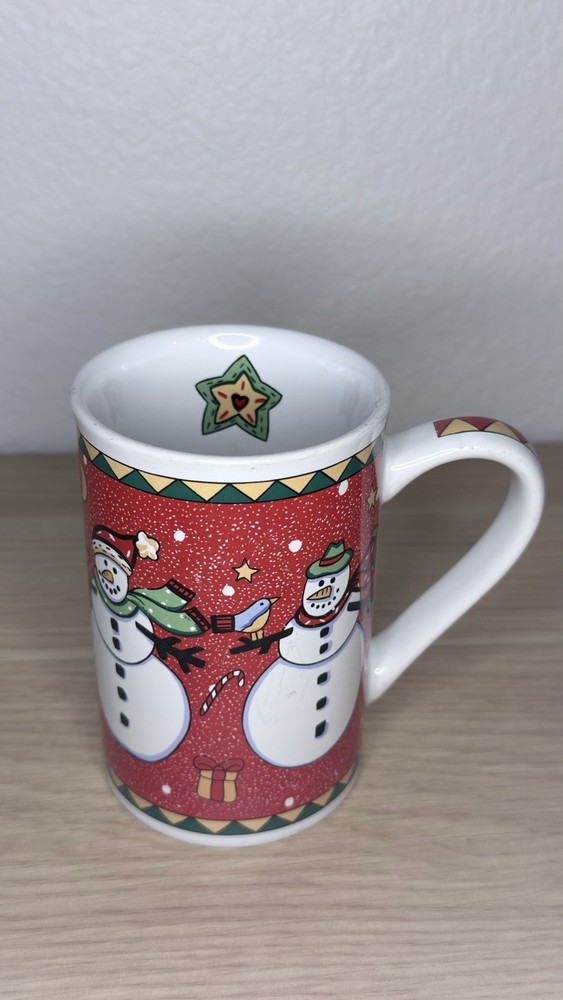 Christmas Snowman Coffee Mug – Red Holiday Ceramic Cup with Gift & Star Design Like new!