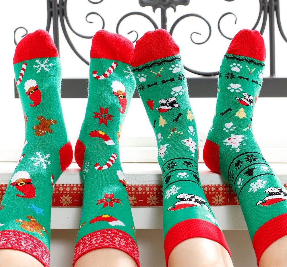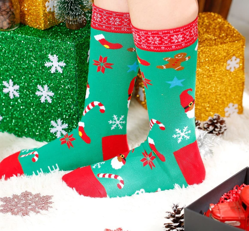 Funny Christmas Socks for Men & Women - Novelty Xmas Gifts - Cool Stocking Stuff Description: CUTE DESIGN: These hilarious christmas socks will go with any x-mas costume. The design features festive gnomes on the bottoms, you can find a fun message "I'LL BE GNOME, FOR XMAS" ONE SIZE FITS MOST: These crew length socks fit most women US size 7 and up and most men US size 6-13 feet AWESOME CHRISTMAS GIFT: These adorable socks are sure to delight her at Christmas. They are the perfect gift for mom, dad, sister and friends for Christmas EXCELLENT QUALITY: These ultra-soft socks feature professional embroidery, tight-knit stitching, comfortable yarn, and a high thread count for lasting durability and no fading VIBRANT EMBROIDERY: These crazy crew socks are embroidered with colorful patterns, and the text and graphic are sewn directly onto the socks to ensure that they won't come off like iron on transfers
