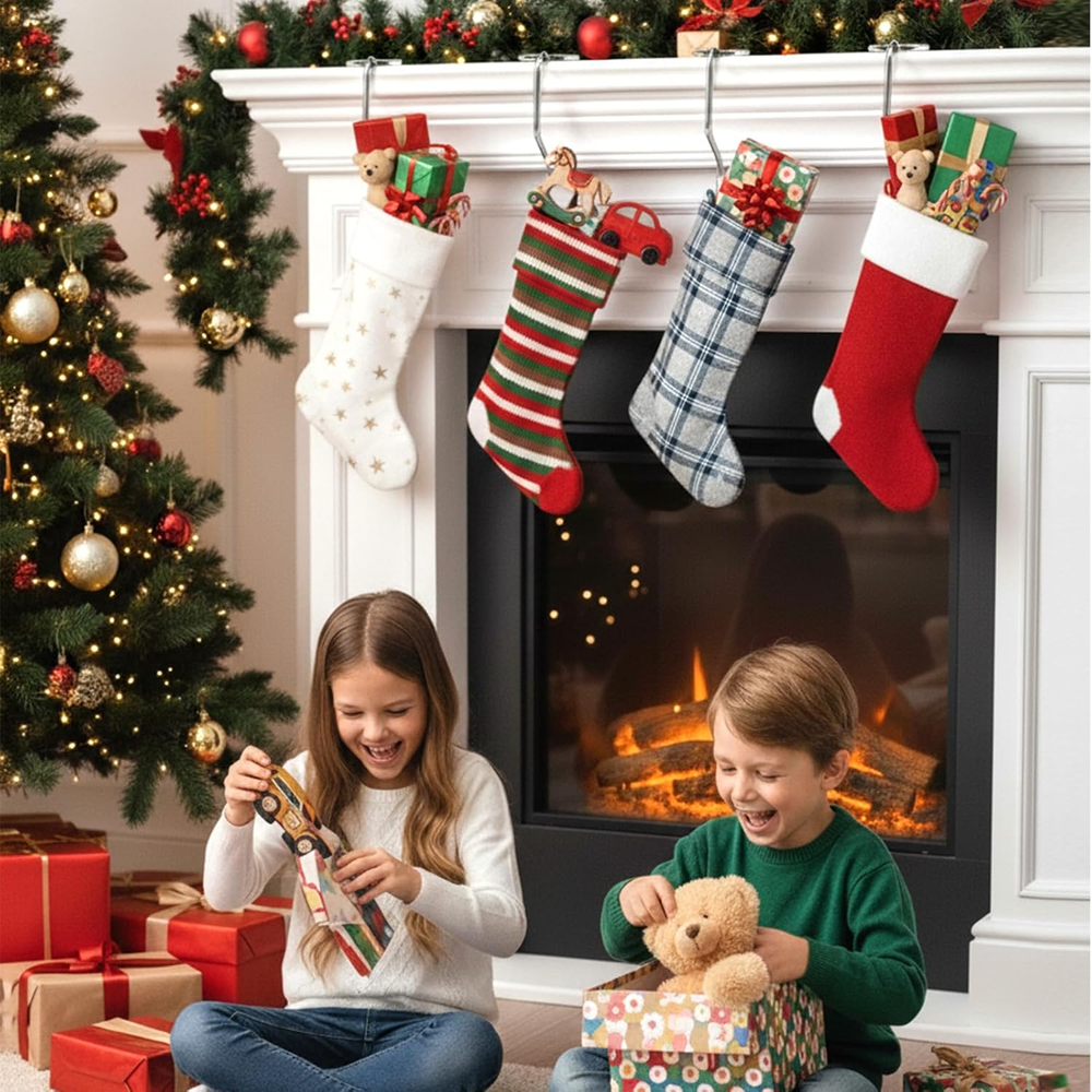 HomeChristmas Stocking Holder for Mantle Set of 6, Stocking Hooks Garland Hangers,Me