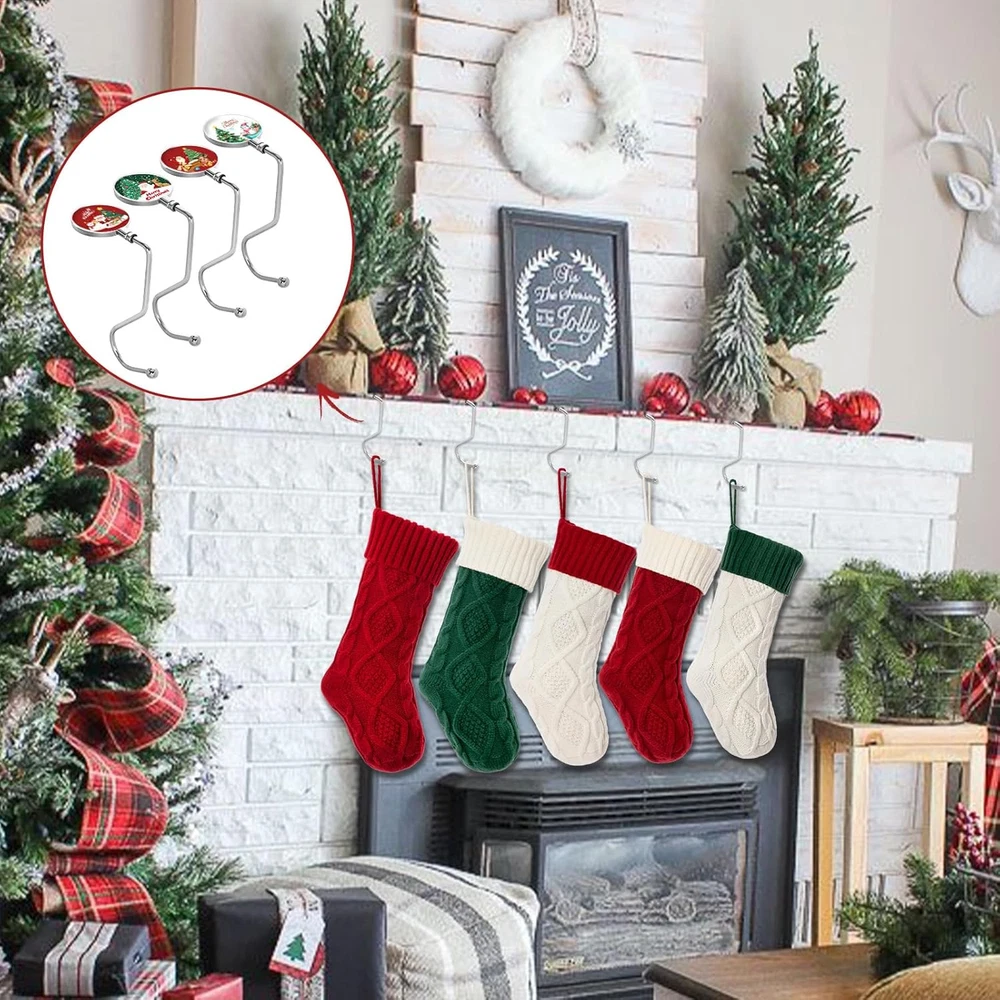 Christmas Stocking Holder for Mantle Set of 6, Stocking Hooks Garland Hangers,Me