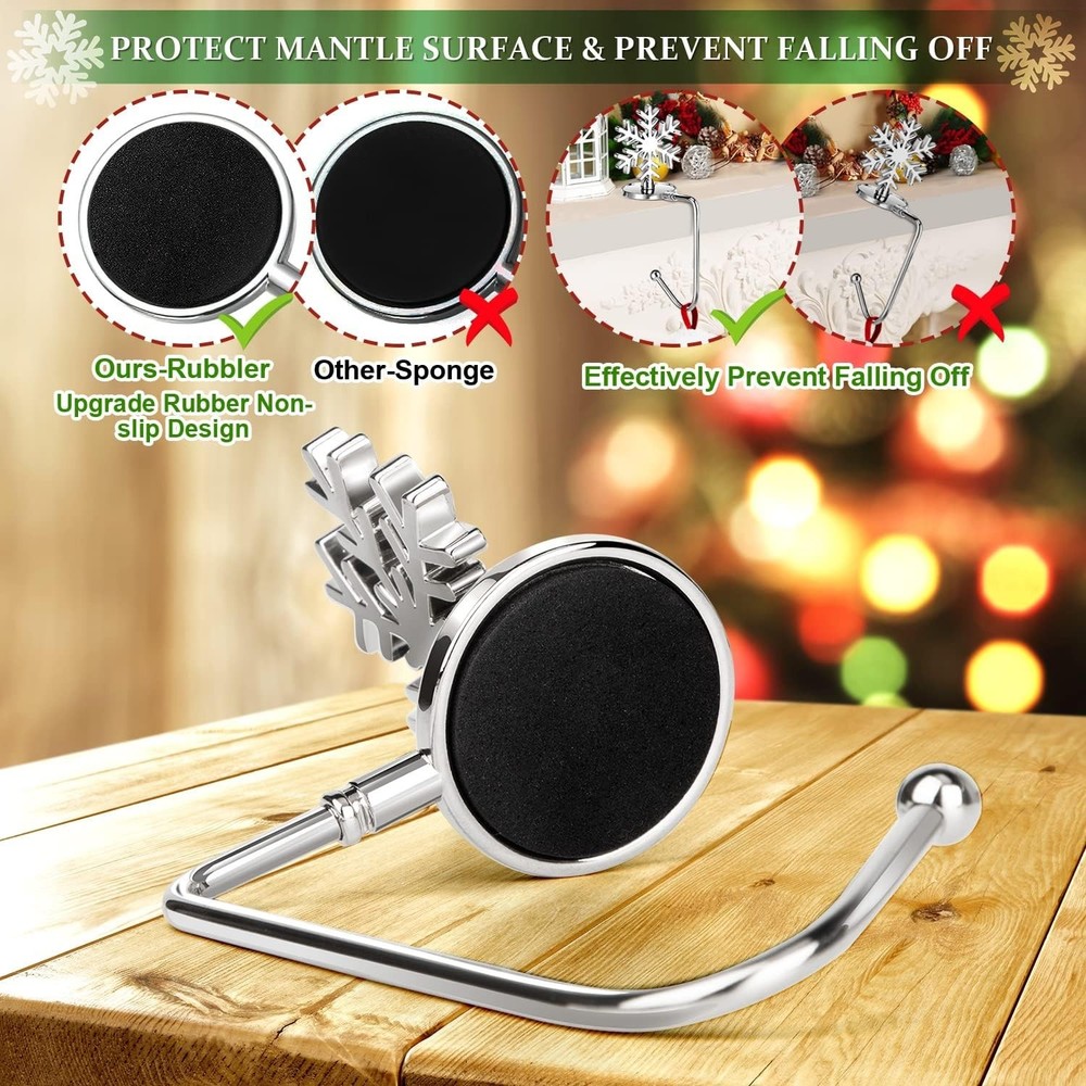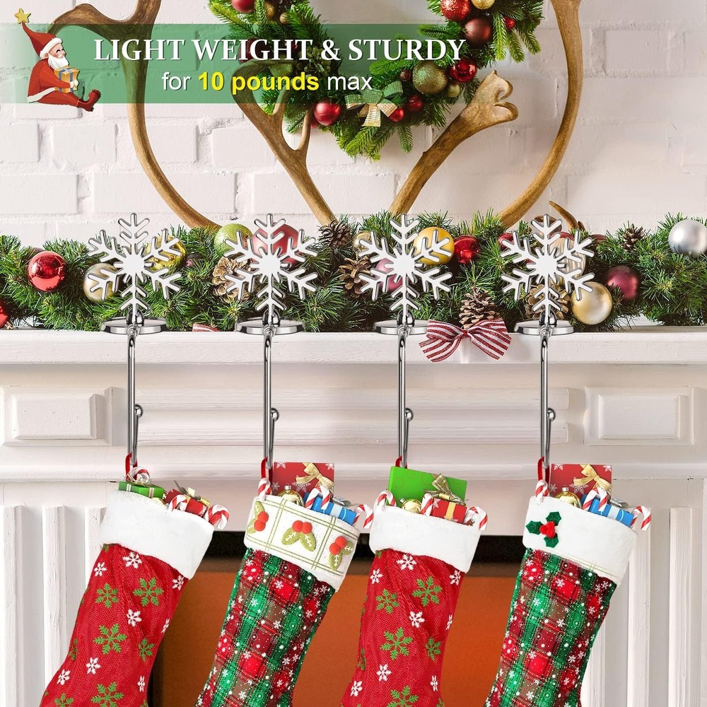 Christmas Stocking Holders for Mantle Lightweight, Small Snowflake Stocking Holder Set of 4, Rotatable Fireplace Stocking Hangers Suitable for mantels Less Than 2.7 inches(Snowflake) Product Details Item Shape: Snowflake Brand: Sereliy MPN: 10210 UPC: 776580934867 EAN: 0776580934867 Color: Silver Material: Zinc Brand: Sereliy Item dimensions L x W x H: 4.13 x 4.13 x 2.76 inches Mounting Type: Weighted Base Item Thickness: 2.76 Inches Maximum Weight Recommendation: 10 Pounds Number of Hooks: 4 Number of Pieces: 4 Manufacturer: Sereliy UPC: 776580934867 Product Dimensions: 4.13 x 4.13 x 2.76 inches Item Weight: 8.8 ounces Item model number: 10210 Batteries required: No Included Components: Case 4 Pack Stocking Hangers for Mantel Suitable for mantels less than 2.7 inches thick.Small Christmas stocking holds measure 6*2.7 inches, small size but very sturdy and can withstand roughly 10 pounds of weight. Anti-Slip Design The bottom disc of the christmas stocking holder has a rubber pad and an anti-slip design, so you don't need to use tape to ensure that your Christmas stockings and gifts hang securely without falling. High Quality Material These christmas stocking hangers are made of zinc alloy with smooth touch, very durable and don't worry about rust and corrode, can be applied for a long time. 360 Rotatable DesignThe snowflake stocking holders for mantle can be rotated for easy storage and continued use the next Christmas. Wide Application Stocking hangers is widely used to hang Christmas stockings on the mantel and fireplace to add some festive atmosphere, perfect for Christmas party decoration. It can also be used to hold different handbags in daily life.