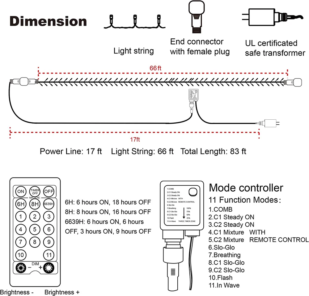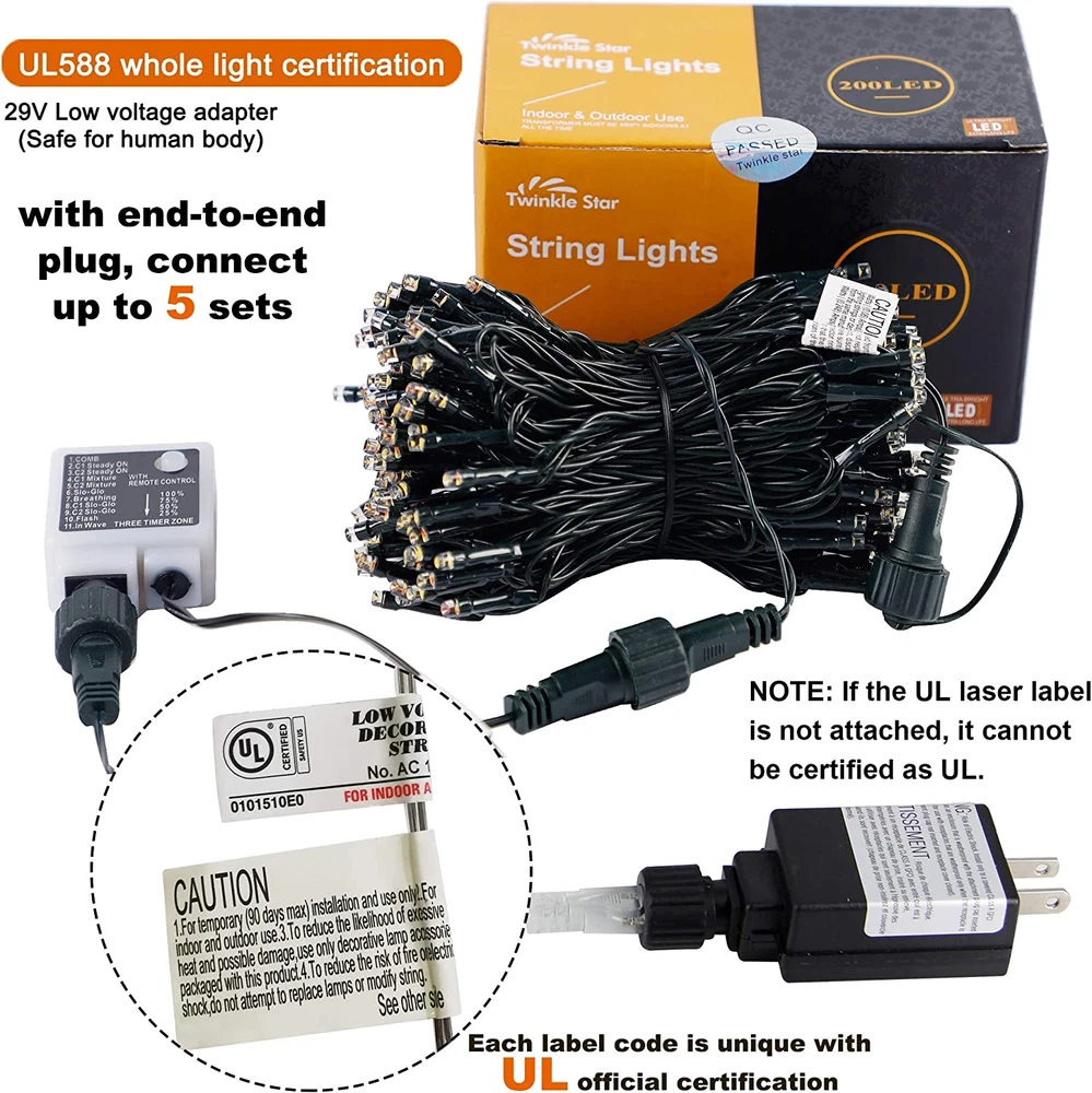 Store New Arrivals Add to Favorite View Feedback Contact Fast deliveries to the customer's home Quality customer service John Make the customers happy! Christmas String Lights, 66Ft 200 LED Color Changing Tree Light Plug in 11 Modes Functions Warm White & Multicolor with Remote Timer, Connectable for Outdoor Indoor Xmas Party Decorations Description 11 Lighting Modes & Color Changing Christmas Lights: Warm White and Multicolor(Red, Green, Yellow, Blue) in one String. Warm & multicolor COMB, steady on for warm white, steady on for multicolor, warm white mixture, multicolor mixture, warm white and multicolor slo glo, breathing for warm white and multicolor, warm white slo glo, multicolor slo glo, warm white and multicolor flash, warm white and multicolor in wave. Humanize Dimmable Lighting: We provide 100%-75%-50%-25% 4 level brightness for your convenience, create suitable, comfortable atmospheres at your needs according to various occasions. Please kindly note - when in multi-color mode, all colors (including red, yellow, blue, and green) will be displayed together. No specific colors can be set! Timer & Memory Function: Built-in 3 kinds of timer. 30,000 hours lifespan, long lasting and energy saving. 29V safe power adapter, low power consumption, safety use. These lights feature memory function - if you turn off the lights with the remote and keep the plug connect the power socket (power not cut off). It will remember your last light mode setting when turning on via the remote. But the memory function will be reset when power cut off. Remote Control: The remote effective range can reach to 16ft at the longest distance. With 4 brightness level: 25%, 50%, 75%, 100%, 11 lighting modes, and 3 kinds of timer. 66 ft length (first light to last light)LED String Lights with Male and Female Safe Plug, could be extended to a maximum of 5 light chains(maximum 1000 LED). Widely Use: Perfect for indoor and outdoor use, Christmas, Party, Valentine's Day, Wedding, Home, Window, Bathroom, Festival, Holiday, Shows, Restaurant, Hotel, Commercial building, Shopping center etc. Product Description Twinkle Star 200 LED Christmas String Lights 66ft Specifications: Light Color: Warm White & Multicolor LED Count: 200 pcs Total Length (end to end): 83FT String lights: 66FT Package Including: 1 x 200 LED Christmas String Lights High Brightness 200 Multicolor LED lights, high bright and luminous intensity, good heat dissipation, low light decay and create romantic life for you. Waterproof IP44 & long leading wire The Christmas light is waterproof and designed to withstand light rain, perfect for outdoor indoor decoration. Although the power and controller is non-waterproof, but the lights are equipped with17 ft leading wire, you can place the lights where you want them to start, and can plug them in up to 17 ft away. Remote Control The remote effective range can reach to 16ft at the longest distance. With 4 brightness level: 25%, 50%, 75%, 100%, 11 lighting modes, and 3 kinds of timer. Item model number CL-200 C Light Source Type LED Style 11 Lighting Modes Number of Items 1 Power Source Corded Electric Item Dimensions 6 x 3 x 3 inches Number of Light Sources 200 Control Method Remote Theme Star Style Number CL-200 C Controller Type Remote Control Product Dimensions 6 x 3 x 3 inches; 1.28 Pounds Occasion Type Wedding, Christmas Seasons Christmas Number of Batteries 1 CR2 batteries required. (included) Additional Features Color Changing Indoor/Outdoor Usage Outdoor, Indoor Light Color White, Warm White Water Resistance Level Not Water Resistant Item Weight 1.3 Pounds Occasion Wedding, Christmas Special Feature Color Changing Color Multicolor-2 Indoor Outdoor Usage Outdoor, Indoor Batteries 1 CR2 batteries required. (included) Voltage 29 Volts Included Components '29V safe power adapter', 'remote control', '200 LED Christmas String Lights' Style Name 11 Lighting Modes Size 1 Pack ABOUT US We offer the best prices around on high quality products. Our E-store includes media such as books, movies, music and games while offering electronics, toys, sporting apparel, clothing, tools, general home, garden items and more. SHIPPING We are always working hard to ensure your package arrives as soon as possible. Please understand that some factors like weather, high postal traffic, and the performance of shipping companies are outside of our control. We offer free shipping to the lower 48 states and ship within 2 business days of payment, usually sooner. We do not accept P.O. Boxes. Please provide a physical address. For shipping outside of the continental USA, we only use eBay's Global Shipping Program. The item is shipped to KY and then sent to the rest of the world. International customers are responsible for all duties and taxes. Continue to 'check out' to calculate costs for shipping the item to your country. Messages regarding eBay's Global Shipping Program MUST be directed at eBay EXCLUSIVELY. RETURNS We offer a 30-Day Return Policy on items in which you are not completely satisfied with. You have the option of a full-refund or an exchange of the item. No returns are available on items shipped outside of the USA PAYMENT We accept PayPal. CONTACT US This page content is yet to come Please ad us to your favorite seller and visit again later Thank You CUSTOMER SATISFACTION We try our very best to make sure every customer is completely satisfied. If there's a problem, message us! We're happy to help. WE ACCEPT