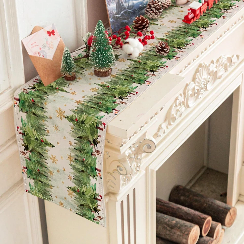 Christmas Table Runner Pine Tree Snowflake Table Cover wolflend Table Runner