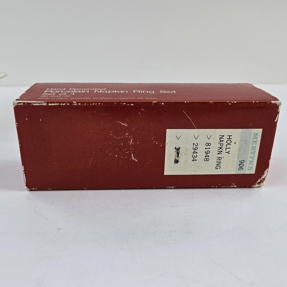 Thank you for viewing this listing. Elevate your festive table setting with this exquisite Holly Berry 7 Piece Lot, crafted from fine porcelain and originating from Japan. Each piece showcases a classic white color accented with delicate gold rims, bringing a touch of elegance to your Christmas celebrations. The collection includes a Christmas tree shaped candy/jewelry dish, soap dish, tumbler, and four napkin ring holders; designed to create a cohesive and charming display. The napkin rings come in their original box. These porcelain items are ideal for those who appreciate timeless holiday decor with a sophisticated flair. Please view the condition description and photos for additional details and, as always, feel free to reach out with questions.