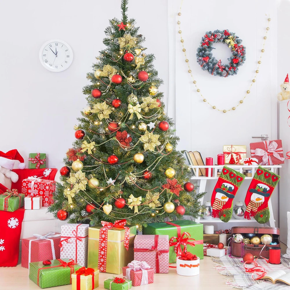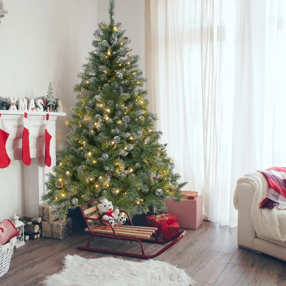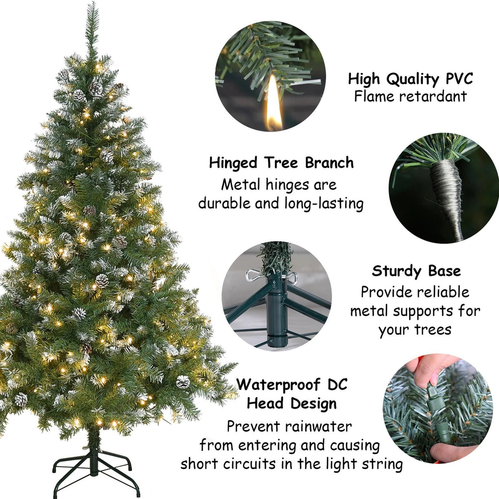 Christmas Tree Artificial 6ft Deluxe With Lights Snow Flocked Christmas Tree