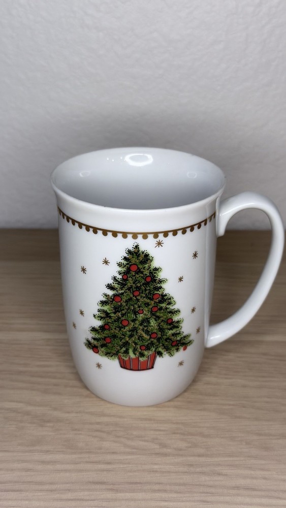 Christmas Tree Coffee Mug – Elegant White Ceramic Holiday Cup with Gold Trim Like New!