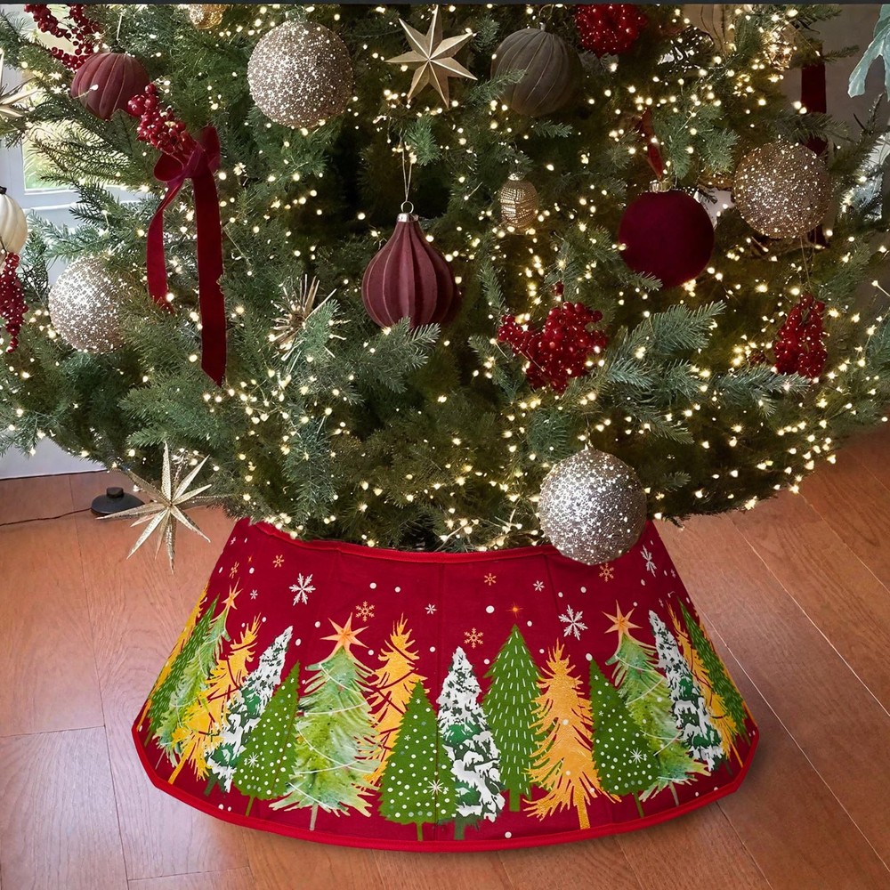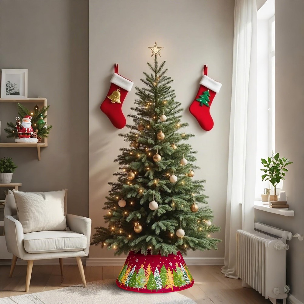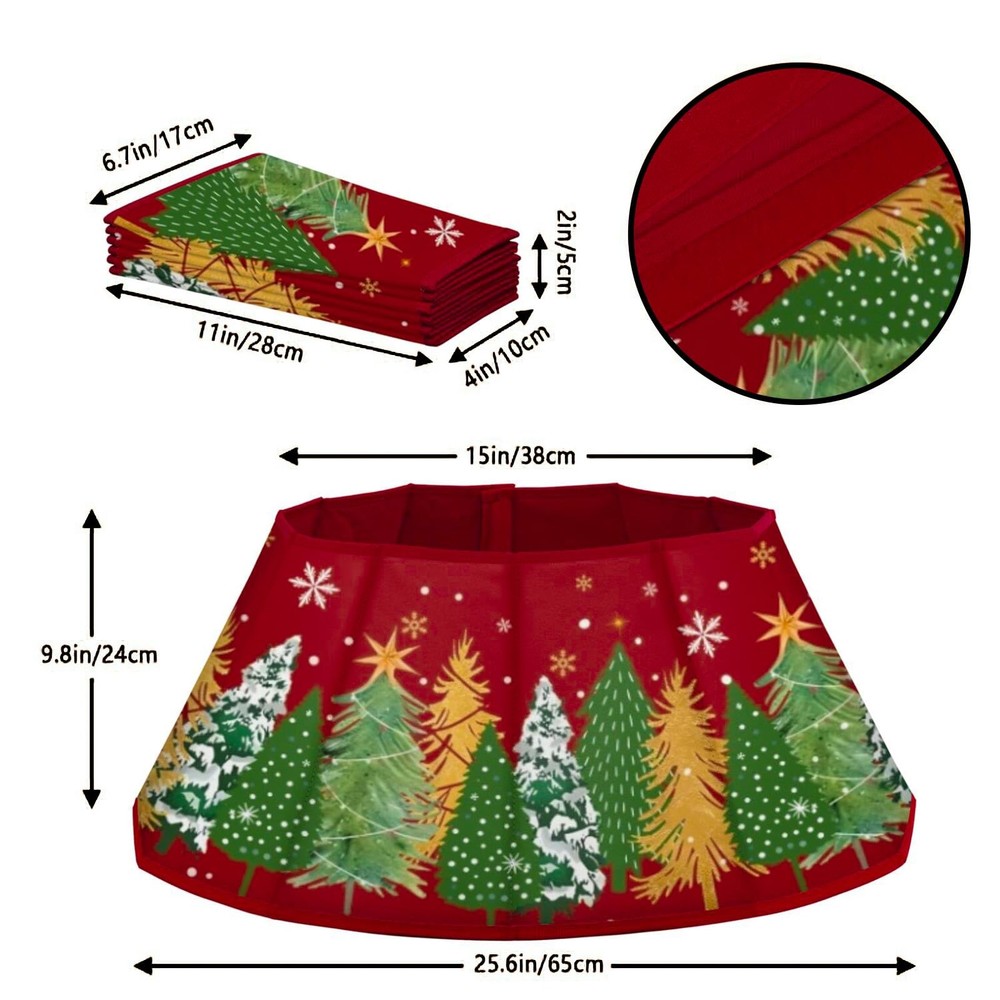 Eye-Catching Festive Pattern:Featuring a charming classic Christmas tree and snowflake design, this Christmas tree collar adds instant holiday cheer to your home decor. It perfectly various Christmas themes, from traditional to modern, making your Christmas tree the focal point of any room. Perfect Size for Most Christmas Trees:Measuring 25.6 inches in diameter and 9.8 inches in height, this tree collar fits most standard Christmas trees (4-7 feet tall). It effectively covers the unsightly tree stand, creating a neat and cohesive look without taking up too much space around the tree. Durable & High-Quality Material:Crafted from high quality velvet flannel and cardboard inside, this Christmas tree collar is tear-resistant, -free and not easily deformed, perfect for your Christmas tree decoration. The christmas tree base collar is also easy to clean, simply wipe with a damp cloth to remove dust or stains, ensuring it can be reused for many holiday seasons. Easy to Assemble & :Designed with a user-friendly velcro closure, these christmas tree collars can be assembled in minutes without any tools. When not in use, it can be folded flat into a compact size, saving storage space in your closet or storage box until the next Christmas. Multi-Scene Decoration & Ideal Gift:Not only suitable for home use (living room, bedroom, hallway), but also perfect for holiday parties, Christmas markets, hotels, and retail stores. It’s also a wonderful Christmas gift for family, friends, and colleagues who love decorating their homes for the holidays.