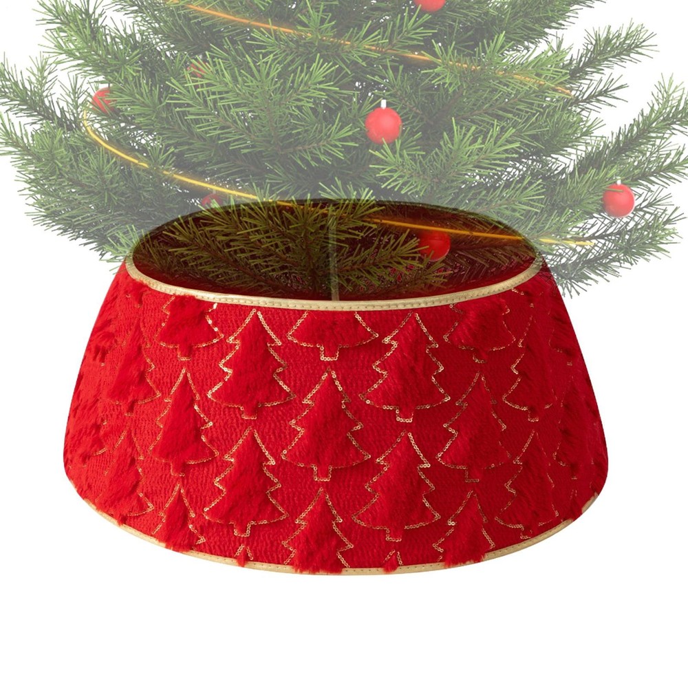 Red And Green Velvet Tree Skirt With Sequence Holly Leaves