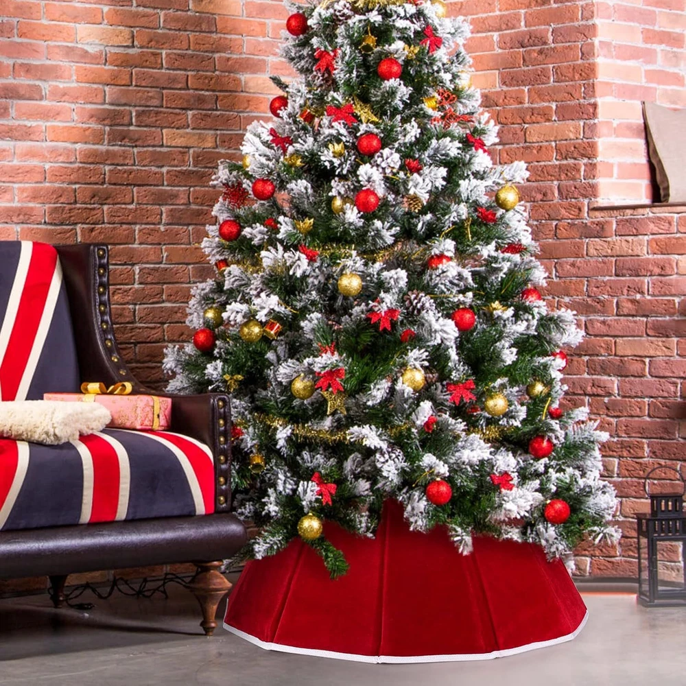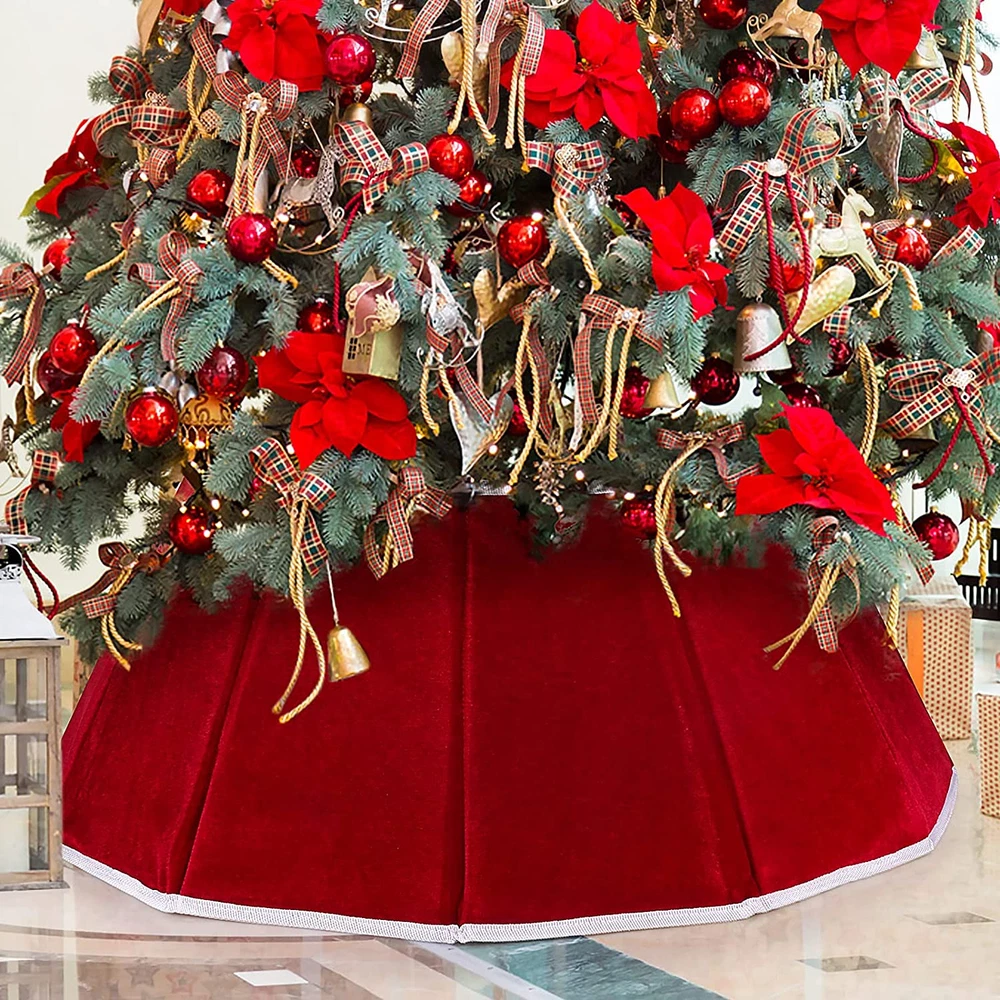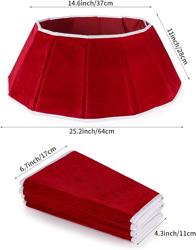 MORE NOVEL: This Christmas tree ring is a new transformation of the traditional tree skirt. It is recommended to match the Christmas tree collar with a 6ft/7ft/8ft/9ft slim tree. There is no need to rearrange fabrics or remove wrinkles, Christmas tree collar completely hides the base of artificial or living trees giving a graceful and country rustic charm to your holiday indoor decorations HIGH QUALITY: Handcrafted Christmas tree ring collar is made of heavy red flannel of the highest quality and cardboard with lining, which is durable and has a hemming design that is not easy to break. The Velcro label can be set quickly and easily and can be folded and stored after the holiday decoration, saving space and convenience for the next use CHRISTMAS DECOR: A beautiful upgrade of the tree skirt, easy assembly by sticking velcro, just place it under the tree to decorate any place you want, such as a home, garden, school, store, office, etc. You can put Christmas gifts inside the tree collar to decorate your Christmas tree more perfectly, suitable for indoor or outdoors Christmas theme parties, shopping mall holiday decoration HOLIDAY CHOICE: Lovely Christmas tree base box, stylishly decorate the bottom of the Christmas tree, bright red will be eye-catching, and can be used indoors or outdoors. Top diameter 14.6” x bottom diameter 25.2” x height 11”. Note: We recommend that you measure your tree stand to make sure it fits the collar PERFECT PRESENT: A beautiful base cover under the tree is as important as a shining star on the top of the tree. You can give this decent gift to your family, friends, classmates, roommates, colleagues, etc. If you have any questions, please feel free to contact us, our sales support team will always stand by to assist you, your satisfaction is our ultimate goal Product Description Waenerec Christmas Tree Collar A beautiful base cover under the tree is as important as a shining star on the top of the tree. Bright red will be eye-catching and add a festive atmosphere. Hope that this can bring joy to your holiday and that your elaborate decoration can be praised by everyone and gather happily. Decorating the Christmas tree with family or children is also a sweet family interactive activity. Christmas tree collar for pencil tree is no need to rearrange fabrics or remove wrinkles, Christmas tree collar completely hides the base of artificial or living trees giving a graceful and country rustic charm to your holiday indoor decorations. High Quality Our product development team pays attention to every detail including the best fabric compositions, printing techniques, sewing, and embroidery applications. Foldable and Reusable The hemming design is not easy to break. Wipe or wash with a damp cloth after use, and hang it in a ventilated place to dry. Fold it for storage to save space and facilitate next use. Easy to Use All of our products use the latest techniques. Velcro design is easy to install, and you can decorate the Christmas tree quickly and easily without knotting. Lovely Christmas tree base box, stylishly decorate the bottom of the Christmas tree, bright red will be eye-catching, and can be used indoors or outdoors. Christmas tree ring is perfect decoration for living room, bedroom, garden, bar, hotel, supermarket or somewhere else. Suitable for Christmas holiday party, Christmas party theme ornament. Specifications Package includes 1pcs Christmas tree ring Size The tree ring size is 25.2inch (bottom diam) x 14.6 inch (top diameter) x 9.8 inch (High), fits most standard size Christmas trees. Material Heavy flannel of the highest quality and cardboard with lining Perfect for Bedroom, living room, coffee shop, office, conference roomLiving room, bedroom, garden, bar, hotel, supermarket or somewhere else. Features Easy assembly by sticking velcro. With the quick fold in no time after the holiday season is over, space saving storage guaranteed.