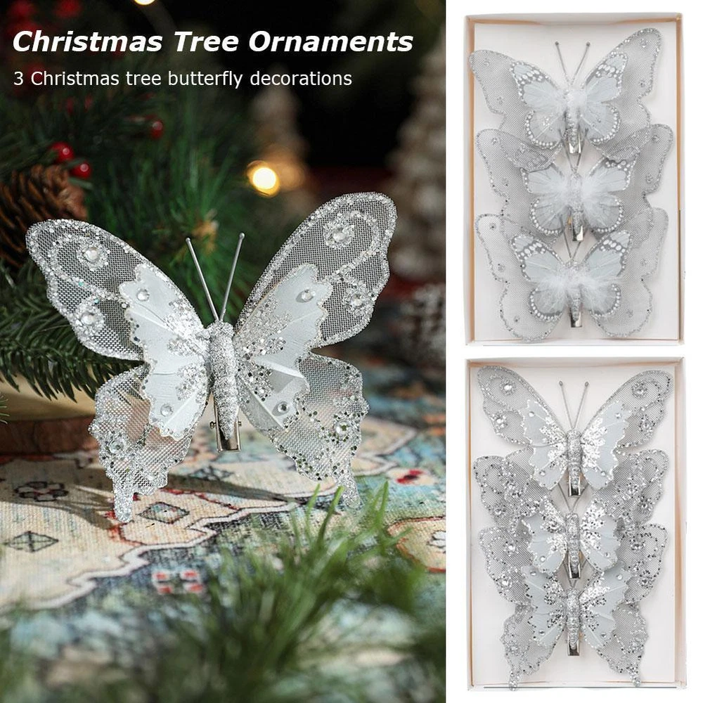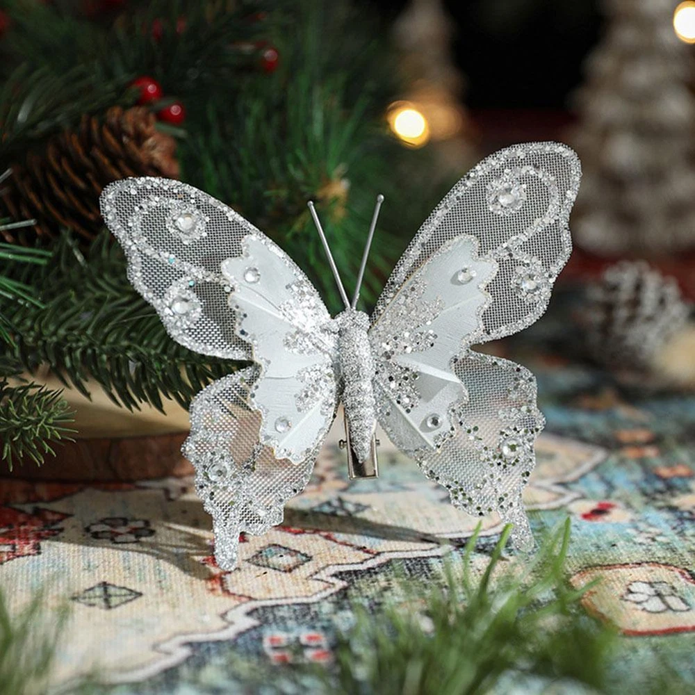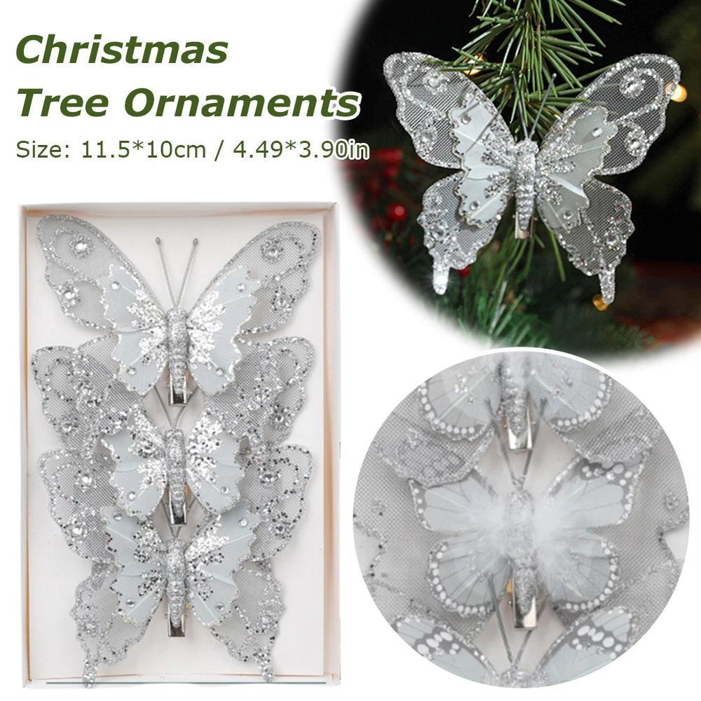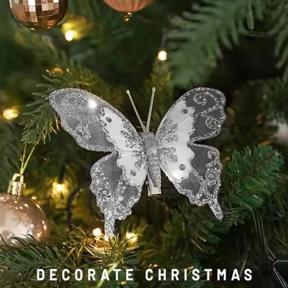 Christmas Tree Decorations Butterfly Glitter Xmas Ornaments Holiday Weddin T7N7