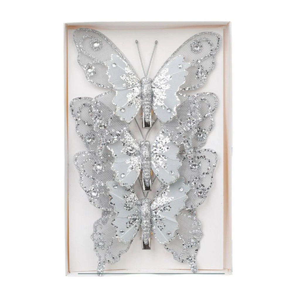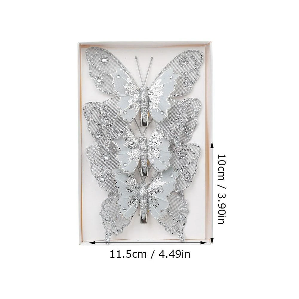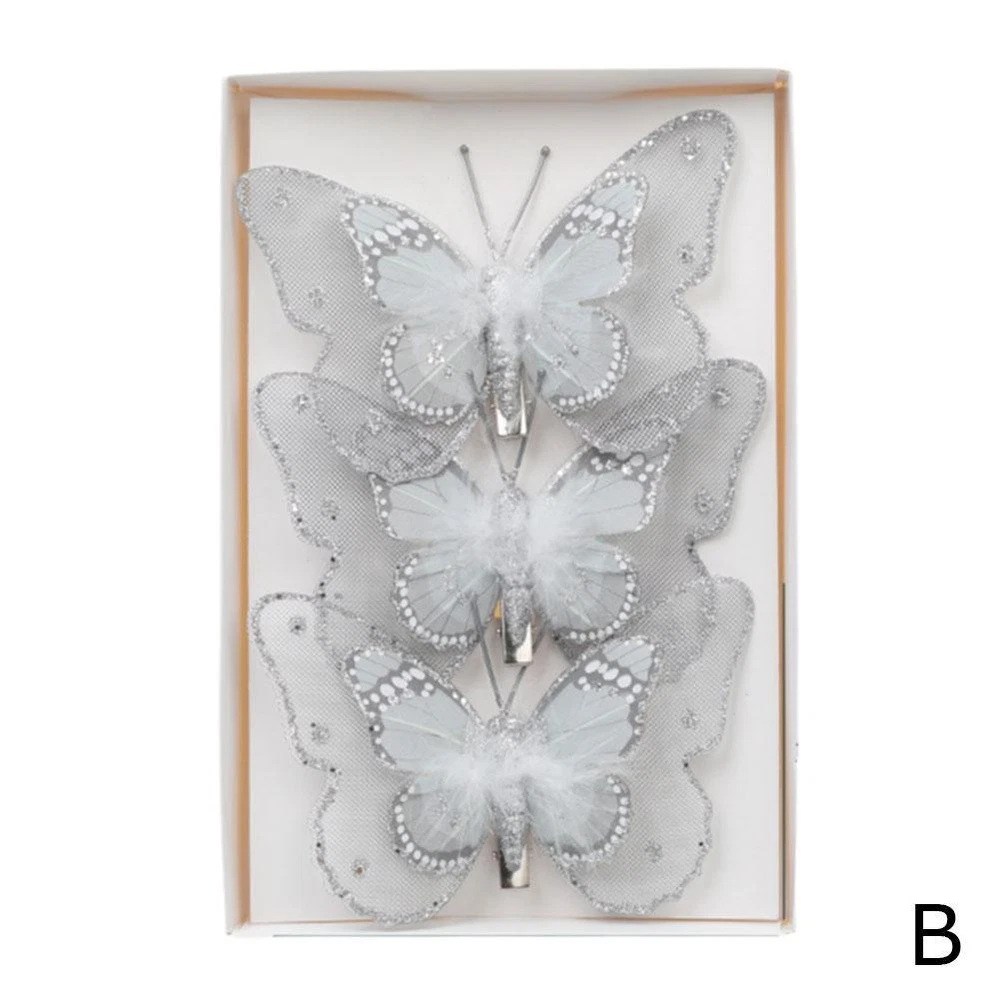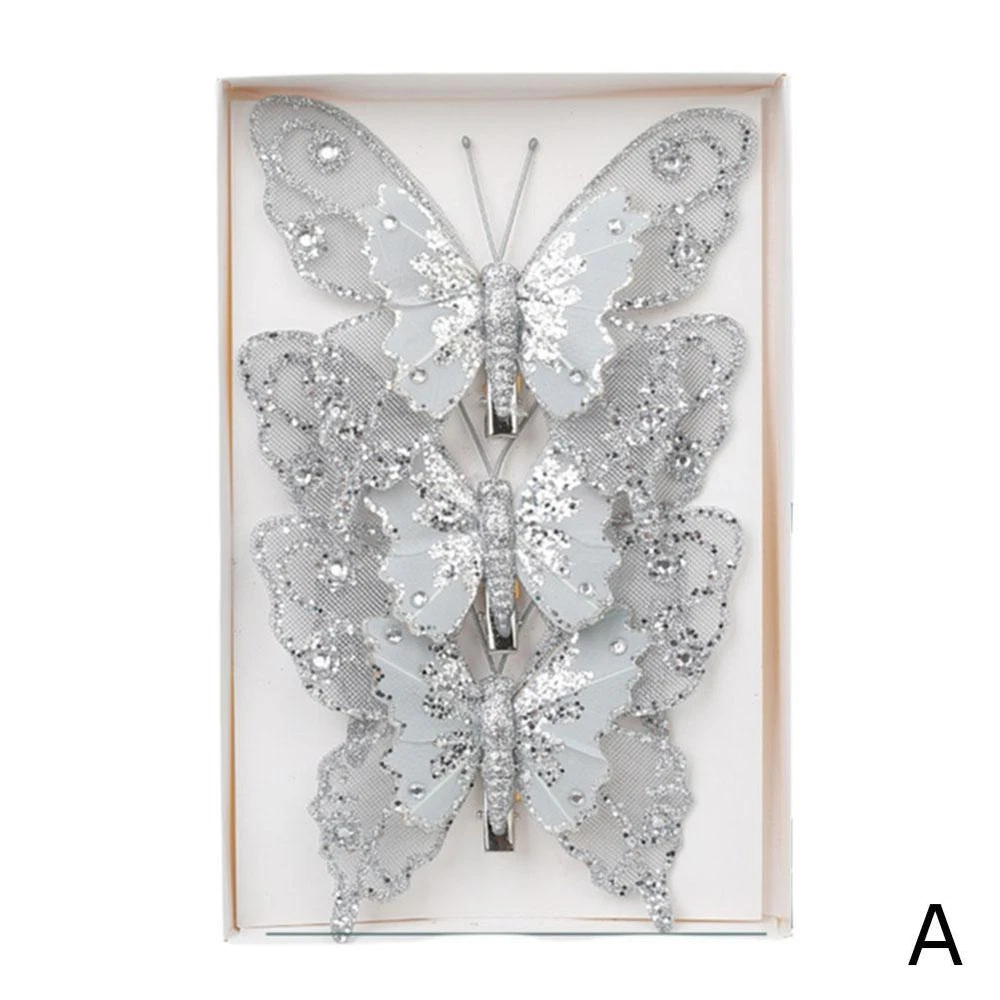 Christmas Tree Decorations Butterfly Glitter Xmas Ornaments Holiday Weddin T7N7
