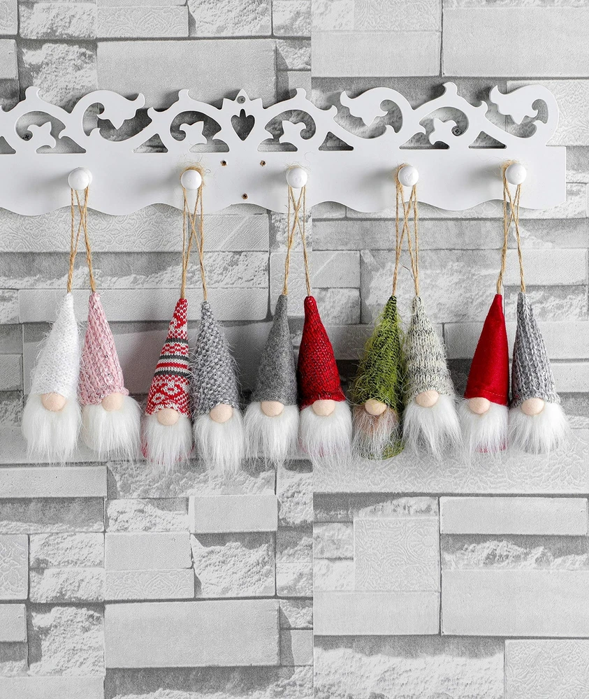Christmas Tree Hanging Gnomes Ornaments Set of 10, Swedish Handmade Plush Gno...