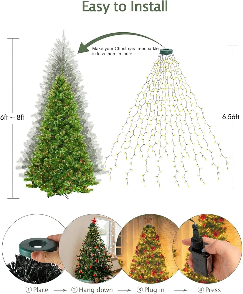 Christmas Tree Lights with Ring, 400 LED 6.6Ft X 16 Lines Christmas Tree String