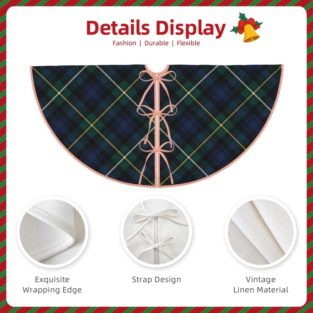 Add a touch of festive charm to any corner of your home with This Christmas Tree Skirt. Whether it's the living room, offices, parties, schools, stores, bedroom, Christmas party, or even outdoor celebrations, this tree skirt fills the space with a joyful atmosphere, making it a perfect addition to your Christmas decorations. Additionally, it's an excellent choice for commercial holiday decorations. 30/36 inches Perfect for any size tree from 4' small to 7' large trees. 48 inches Perfect for any size tree from 5' small to 8' large trees. Go with traditionally decorated and whimsical artificial Christmas trees. Package Includes: 1 x Christmas Tree Skirt Tree Skirts Mat is not only a beautiful decoration, but also a reusable accessory for years to come. Made with high-quality materials, it is designed to withstand the long-lasting. You can use it as a cozy rug in your home or it for next year's celebrations. For maintenance, we recommend hand washing with cold water and air drying to preserve its quality. Elevate your Christmas decor with the Perfect adornments. This charming Christmas tree skirt will be the highlight of your home during the grand holiday season. Ensure your floor remains free from pine needles or sap, maintaining a clean and tidy space throughout the festivities. Make this Christmas unforgettable with design exquisite Christmas Tree Skirt. Premium Material: Crafted from high-quality faux linen, this tree skirt is long-lasting and can be reused for multiple holiday seasons Three Sizes: Choose from 30/36/48 inches (76/91/122cm), making it suitable for most Christmas tree sizes. The rustic tree skirt provides a beautiful backdrop for ornaments and gifts, creating a stunning decoration for your Christmas tree Unique Pattern: With vivid pictures printing, it makes the Christmas tree Charming, perfect for Xmas decoration and make the gifts on it more attracting and keep your floor clean. It's also a favorite spot for pets and children during the holiday season Product features: Christmas tree skirt with 3 red rope straps, it's a quick and easy way to decorate a christmas tree strapping. Installed under the Christmas tree, it can collect the silver leaves dropped by the Christmas tree, so as to keep the clean Occasions: Perfect Christmas tree decoration, the Christmas tree skirt are suit for christmas, halloween, christmas cosplay, promotions, annual ceremonies, community events, stage performances, holiday parties, etc