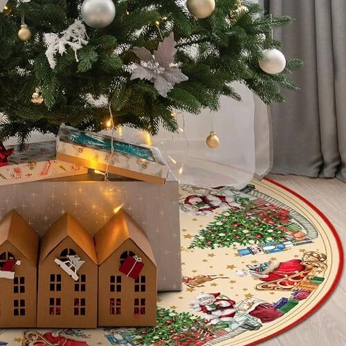 30 Days Return Policy Fast Delivery Trusted seller Christmas Tree Skirt 48 Inch, Santa Claus Gift Tree Mat, Xmas Christmas Tree Base Cover Collar Winter Holiday Decoration Ornaments Product Description Decoration: 48inch Christmas tree skirt will cover the stand of your christmas tree and any unsightly wires, clear patterns Santa Claus gift for decor your Christmas. Soft Material: The Christmas tree skirt is made of soft polyester, it is easy to clean and doesn't have any odor. Make your child feel comfortable and soft, fully experiencing the joy of Christmas holiday. Installation: The Christmas tree mat has 3 ties that will secure it around the tree nicely. The tree skirt size is 48 inch. Choosing the right size dress for your tree canmaking it look fuller and more attractive. Theme Style: The Christmas tree skirt is made up of golden and red, featuring Santa Claus, Elk deer and sled. This is very suitable for decorating Christmas trees during winter Christmas, making your Christmas tree style more prominent. Free Service: If you are not satisfied with our products or have any use problems with the products received, please feel free to contact us. Shipping Returns Payment Shipping Shipping is FREE to all addresses other than APO/PO boxes in the lower 48 states. All our stock ships from US-based warehouses. Shipped via USPS or UPS (depending on location and package weight) Unless stated otherwise, all orders will ship within 24-72 hours of your payment being processed. Check our feedback to see the great reviews of FAST shipping we offer. Returns As our valued customer, we will do our best to make sure the product you receive arrives to you on time and as expected. If you are not satisfied with your purchase, please contact us within 30 days of receiving your order to process a return. Payment We currently accept payment via eBay managed payments only. Once payment is cleared, we will dispatch your shipment within 1-3 business days. Please refer to the "Shipping" tab for more information regarding shipping speed to your destination.