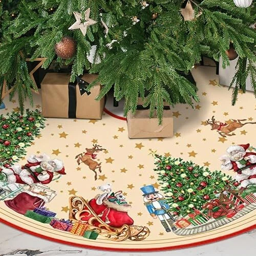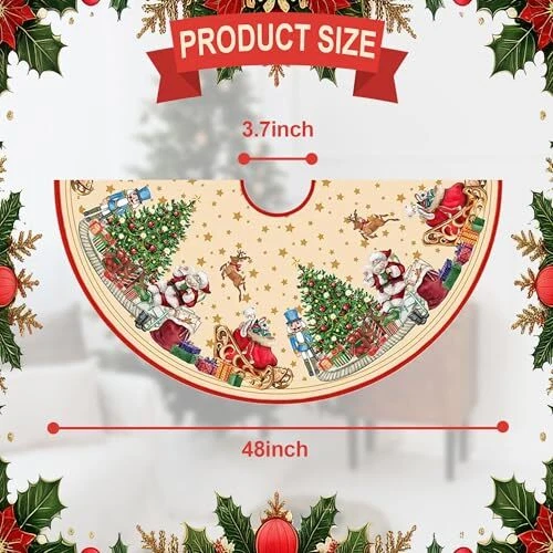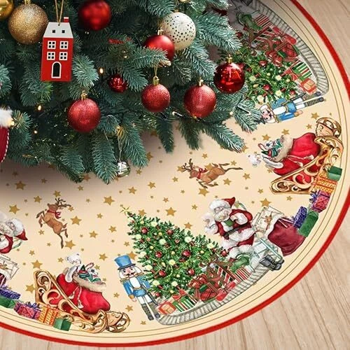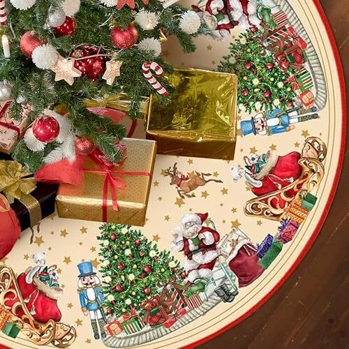 Christmas Tree Skirt 48 Inch, Santa Santa Claus and Nutcracker Soldier Pattern