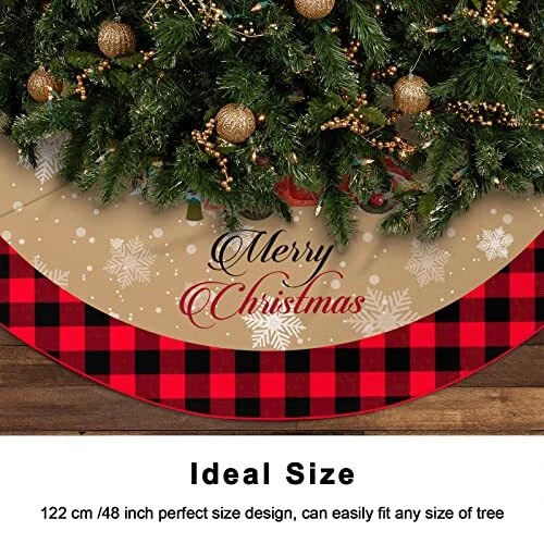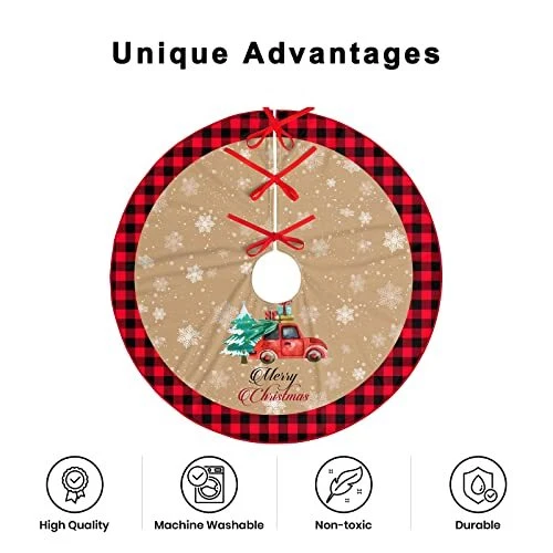 Christmas Tree Skirt, 48 Inch Truck Xmas Tree Skirt with Black Buffalo Red