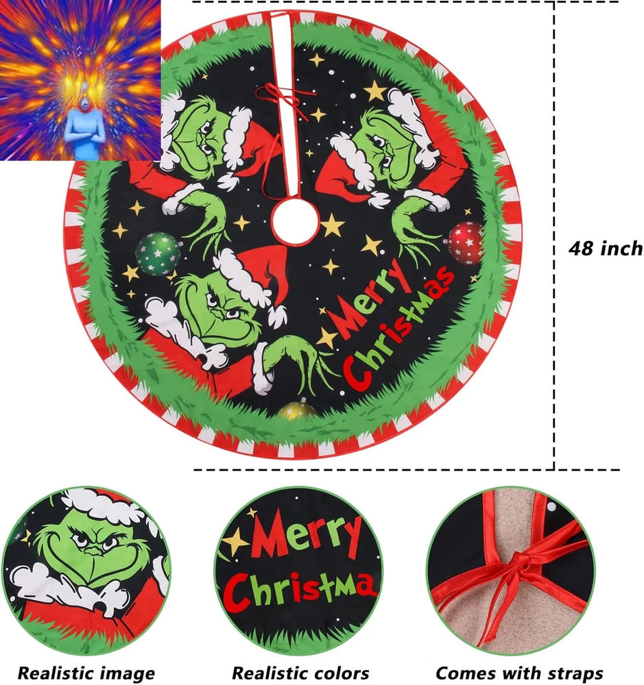 Store New Arrivals Add to Favorite View Feedback Contact Christmas Tree Skirt 48 Inches, Red Velvet Faux Fur Trimmed Tree Collar with Snowflakes and Christmas Monsters Design for Holiday Party Decor Description Color Green Pattern Stars Fabric Type Polyester Blend Material Polyester Blend Material Type Polyester Blend Size Medium 🎄Luxurious Velvet Touch🎄: Each Christmas tree skirt is crafted from the finest green velvet, offering a silky-smooth touch. It's not only durable but also exudes a sense of luxury, enhancing the festive ambiance 🎄Glimmering Stars & Snowflakes Design🎄: The unique stars and snowflakes pattern, intricately embroidered, shimmer beautifully, infusing your Christmas décor with a vivid festive atmosphere and showcasing unparalleled taste 🎄Perfectly Spacious Size🎄: With a 48-inch diameter, this design not only immaculately covers the tree base but also demonstrates meticulous craftsmanship, making the tree radiate with unparalleled allure 🎄Inspired by a Classic Film🎄: Drawing inspiration from a well-known classic American movie, this tree skirt transcends mere festive decoration, becoming a fusion of culture and art 🎄The Star Attraction for Multiple Occasions🎄: This Christmas tree skirt not only complements the tree flawlessly but also stands out at various Christmas-themed parties and family gatherings. Its unique design is bound to turn heads, adding an unmatched charm to your festive celebrations Product Description Super personalized Christmas Tree Skirt serves a new theme for your Christmas party and decorations, this Christmas Tree Skirt can set the Christmas mood well, it will be the perfect match for your holiday Christmas tree. Personalized Designs Beautifully designed, skillfully blending the with Christmas, I'm sure this Christmas Tree Skirt will be an essential element of your Christmas decor! High quality material The fabric is soft and easy to take care of, you can also use it as a home rug or kitchen apron after Christmas, or fold it up for next year. Easy to use. The tree skirt opening has three red cords for easy installation, can be tied as a bow decoration or easily hidden under the tree skirt. ABOUT US We offer the best prices around on high quality products. Our E-store includes media such as books, movies, music and games while offering electronics, toys, sporting apparel, clothing, tools, general home, garden items and more. SHIPPING We are always working hard to ensure your package arrives as soon as possible. Please understand that some factors like weather, high postal traffic, and the performance of shipping companies are outside of our control. We offer free shipping to the lower 48 states and ship within 2 business days of payment, usually sooner. We do not accept P.O. Boxes. Please provide a physical address. For shipping outside of the continental USA, we only use eBay's Global Shipping Program.The item is shipped to KY and then sent to the rest of the world. International customers are responsible for all duties and taxes. Continue to check out in order to calculate costs for shipping the item to your country. Messages regarding eBay's Global Shipping Program MUST be directed at eBay EXCLUSIVELY. RETURNS We offer a 30-Day Return Policy on items which you are not completely satisfied with. You have the option for a full-refund or an exchange of the item. No returns are available on items shipped outside of the USA. PAYMENT We accept PayPal. CONTACT US This page content is yet to come Please ad us to your favorite seller and visit again later Thank You CUSTOMER SATISFACTION We try our very best to make sure every customer is completely satisfied. If there's a problem, message us! We're happy to help. WE ACCEPT