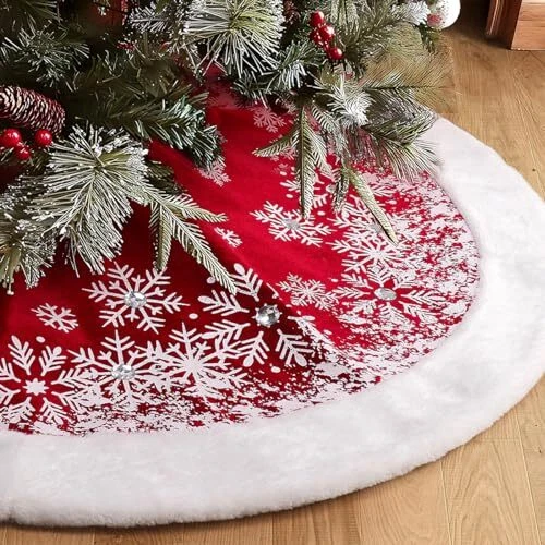 30 Days Return Policy Fast Delivery Trusted seller Christmas Tree Skirt 48 Inches Red Velvet with Snowflakes Xmas Decorations Holiday Decor Product Description Christmas tree skirt -- Add a touch of festive charm to your Christmas tree with our luxurious red velvet tree skirt. The snowflake print, featuring a sparkling centerpiece bead, makes it a delightful addition to your Christmas decor. Christmas decor -- Our Christmas tree skirt is beautifully crafted with an antique-inspired border and fluffy white trim, giving it a vintage feel. It adds a warm and inviting touch to your home decor during the holiday season. Holiday decorations -- Available in both 32 inches and 48 inches, our tree skirt is made of high-quality velvet material in a vibrant red color. It is the perfect size to complement any Christmas tree and enhance your holiday decorations. Home decor -- Create a cozy and festive atmosp with our Christmas tree skirt. Its soft and plush velvet fabric adds a touch of luxury, while the snowflake design adds a playful and whimsical element to your holiday decor. Christmas joy -- Ideal for Christmas enthusiasts, our tree skirt adds the perfect finishing touch to your Christmas tree display. Its elegant design and attention to detail make it a must-have for anyone looking to create a joyful holiday setting. Shipping Returns Payment Shipping Shipping is FREE to all addresses other than APO/PO boxes in the lower 48 states. All our stock ships from US-based warehouses. Shipped via USPS or UPS (depending on location and package weight) Unless stated otherwise, all orders will ship within 24-72 hours of your payment being processed. Check our feedback to see the great reviews of FAST shipping we offer. Returns As our valued customer, we will do our best to make sure the product you receive arrives to you on time and as expected. If you are not satisfied with your purchase, please contact us within 30 days of receiving your order to process a return. Payment We currently accept payment via eBay managed payments only. Once payment is cleared, we will dispatch your shipment within 1-3 business days. Please refer to the "Shipping" tab for more information regarding shipping speed to your destination.