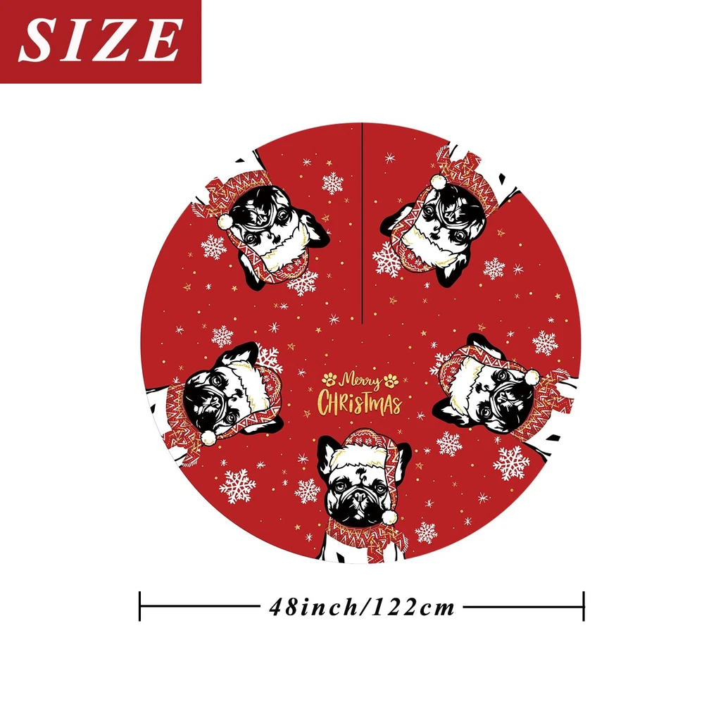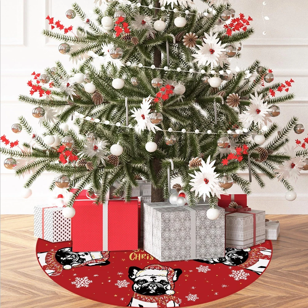 Christmas Tree Skirt Red Tree Skirt French Xmas Winter Tree Skirt 48 Inch for Dog Christmas Indoor Outdoor Decorations HIGH QUALITY MATERIAL: Christmas tree skirt is made of high quality polyester, well made. The surface is comfortable, soft and gives you an excellent hand feeling experience. DIAMETER: The christmas tree skirt has a diameter of 48 inches (122 cm) and fits any size of Christmas tree. MULTIPLE OCCASIONS: You can use this tree skirt to decorate your Christmas tree indoors or outdoors, such as home, living room, bedroom, garden, bar, hotel, school, supermarket or other places. It can also be used as a Christmas gift for your family and friends to increase the festive atmosphere. EASY TO ASSEMBLE AND : 2 ties to secure christmas tree skirt around and in place underneath the christmas tree. Christmas tree skirt has long-lasting durability and can be reused. After the holiday season, you can fold them up for easy storage. FASHIONABLE TREE MAT: Designed with stylish colors and patterns to match any Christmas tree decoration, making your home more lovely and sweet.