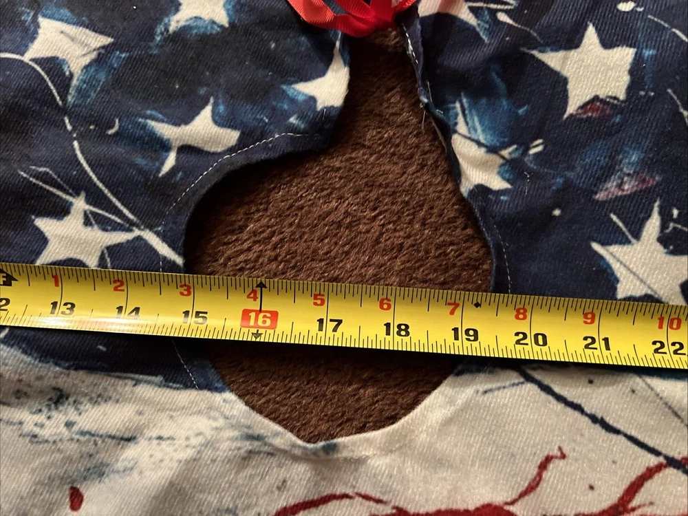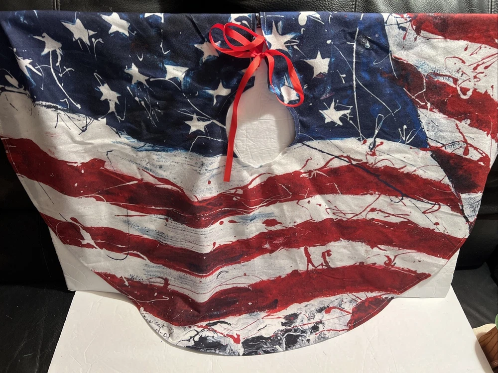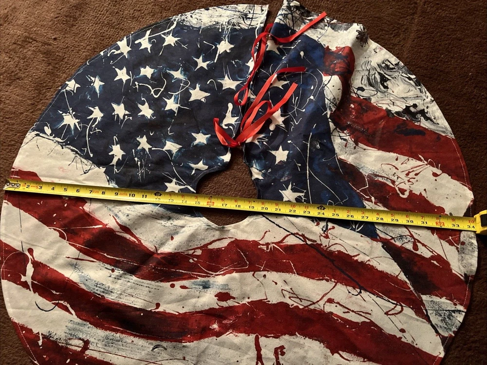 USA Flag/Veterans Christmas Tree Skirt 34" Diameter Up for auction is a USA Flag/Veterans Christmas Tree Skirt, 34" in diameter. In great used condition with normal wear and tear from use a few times, quick glance shows no signs of stains/spots or rips/tears. See pictures for exactly what you are receiving. I do have other lots up for auction and I will combine shipping for multiple items won. Please wait for a final invoice from me at auctions end with a total or if doing buy now, add to cart, then request total from seller for combined shipping before making payment so you can save $$. No worries if you overpay on shipping, I do refund the excess shipping fees. Shipping includes delivery confirmation, envelope, tissue paper, tape and handling costs. Typically ~$1.50-2.00*** Will ship cheapest method which may include FedEx or UPS. Ships within 1-2 business days upon receiving payment. Payment required within 7 days of auctions end or purchase date. Will ship to lower 48 states-sorry no Hawaii or Alaska. Smoke free house! eMail any questions. Thank you for looking! ***I try very hard to keep my prices, including shipping, reasonable. It is necessary to add $1.50-$2.00 onto shipping or I will take a loss with every item shipped. When I use envelopes, tissue paper and tape, it adds ~$.45 to the cost of shipping, eBay boxes can add $.50. eBay takes ~13% of the shipping costs. So an item that costs $10 to ship, I'm charged $1.30 from eBay plus my costs of $.45 of supplies for a total of $1.75 which I add to the total of shipping. Thank you for understanding.