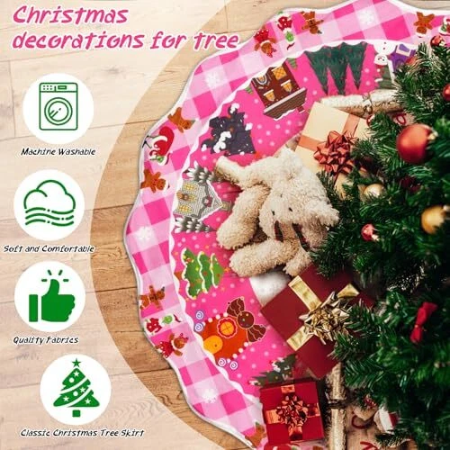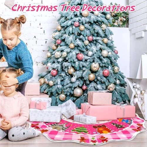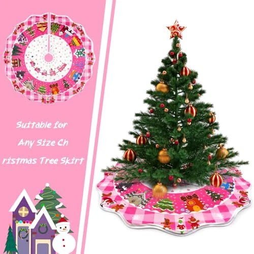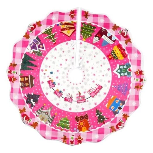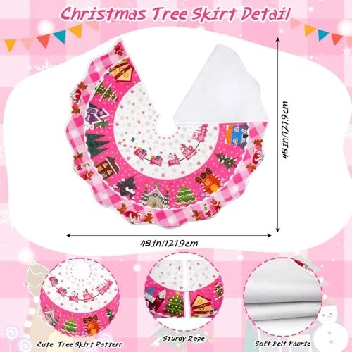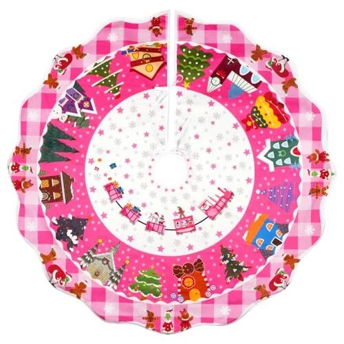 Christmas Tree Skirt,48 Inches Large Xmas Tree Skirt with Snowflake Pink