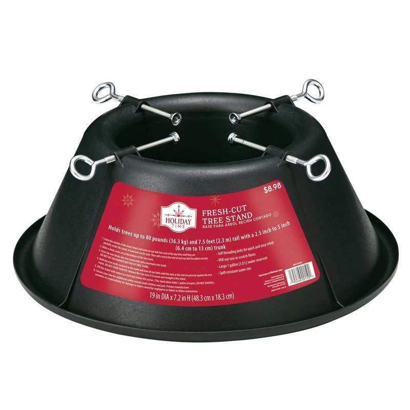 Your Christmas tree will stand tall and proud with the Holiday Time Fresh-Cut Christmas Tree Stand. This tree stand can accommodate natural trees up to 80 pounds (36. 3 kilograms) in weight and 7. 5 feet (2. 3 meters) in height, with a trunk size between 2. 5 inches to 5 inches (6. 4 centimeters to 13 centimeters). Setup is easy and quick with the help of the stand’s four self-threading bolts that have eye hook pins to hold the tree firmly in place. This Christmas tree stand is perfect for any natural tree as it comes with a large one-gallon (3. 8 liters) water reservoir to keep the tree fresh. The reservoir has a spill-resistant outer rim, so there is no danger of water spillage, and it won’t rust or scratch your floors. Constructed from sturdy and durable materials, the Holiday Time Fresh-Cut Christmas Tree Stand ensures your Christmas tree can stand securely, making sure it looks beautiful all season. Holiday Time Fresh-Cut Christmas Tree Stand up to 7. 5 ft and 5" in Diameter, Black Large 1 gallon (3. 8 L) water reservoir Spill resistant outer rim Will not rust or scratch floors Holds trees up to 80 lbs. (36. 3 kg) and 7. 5’ (2. 3 m) tall Fits tree truck from 2. 5" to 5" (6. 4 cm to 13 cm) Self-threading bolts for easy set-up Color: Green Product Dimensions: 19” DIA. x 7. 2” H Model #: GX043101900F You may also like Fast Acting Drain Cleaner 32oz Acid Clog Remover Sink Opener Septic Safe New 22.46 USD 23.64 USD Free shipping 5% off Portable Lightweight Camping Chair w/Cup Holder for Folding Lawn Picnic US 16.21 USD 17.06 USD Free shipping 5% off Cooking Wood Chunks for BBQ Smoking Grilling 549 Cubic Inch 31.91 USD 33.59 USD Free shipping 5% off Deviled Egg Keeper Container Storing Fresh Transporting W/ Lid Dishwasher Safe 10.57 USD 11.13 USD Free shipping 5% off Fiberglass Spinning Fishing Rod Hotcast 4-Ft 6-In 2-Pcs Medium-Light Power Green 11.63 USD 12.24 USD Free shipping 5% off Ceramic Round Bowl Dishwasher Safe Unique Reactive Glaze Durable Kitchenware New 9.8 USD 10.32 USD Free shipping 5% off Chewy Granola Bars Chocolate Chip Dipped Snack Value Pack, 20 Count, 1.1 Oz 10.43 USD 10.98 USD Free shipping 5% off Hose Reel Storage 100ft Hideaway Durable Resin Tangle Resistant Easy Use 46.69 USD 49.15 USD Free shipping 5% off 64 Qt. Blue Stackable Storage Box Plastic Latching Container Tote Bin Organizer 18.01 USD 18.96 USD Free shipping 5% off Stoneware Cereal Bowl Microwave Freezer Dishwasher Oven Safe Drip Design New 9.8 USD 10.32 USD Free shipping 5% off 2 lbs 4 oz Butter Powder Survival Camping Food Storage Everyday Home No. 10 Can 30.43 USD 32.03 USD Free shipping 5% off Kids Folding Table 4 Chairs Set Playroom Daycare Indoor Outdoor Activities New 58.05 USD 61.11 USD Free shipping 5% off