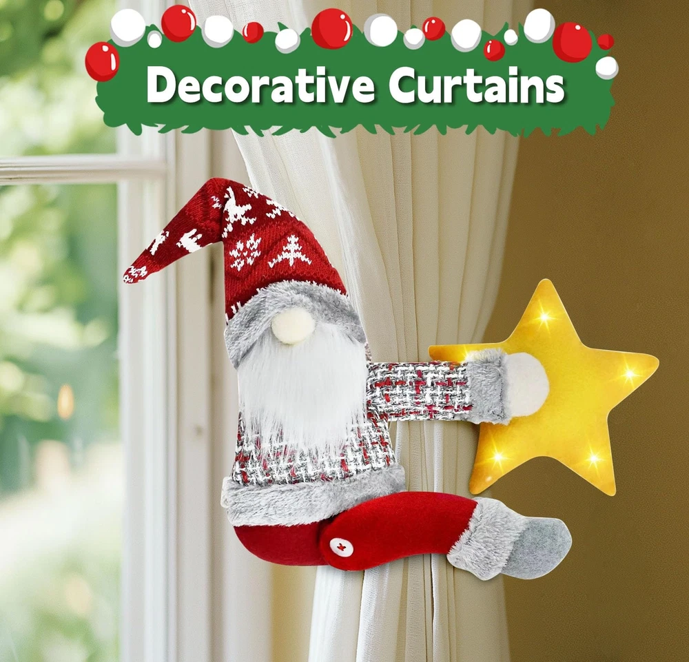 christmas tree topper, christmas tree toppers, christmas tree decorations, christmas tree star gnome tree topper, christmas gnomes christmas gnomes decorations, gnome christmas tree topper CHRISTMAS TREE TOPPER LIGHTED: This Funny Scandinavian gnome plush has a long white elegant beard, The red hat is printed with a Christmas tree and elk pattern, extra soft flexible and adjustable hands legs, Yellow stars that support 8 modes of illumination.bring you and your family more warmth this winter Unique Funny Christmas Tree Topper Gnome:This glowing dwarf Christmas tree decor features a dwarf who is 21.7 inches tall and 9.5 inches wide.diameter of the stars is 7.4 inches. The dwarf has velcro on his hands and legs, making it easy for him to hug the top of the Christmas tree. The knitted hat of the Christmas dwarf is equipped with flexible metal wires inside, allowing you to freely pose in different positions SUPPORT CONTROL OPERATION: The glow function of the Christmas Tree Top Star Dwarf decoration is on his yellow star. Simply open the zipper to remove the battery box and insert three AAA batteries (not included) to glow! Operation supports 8 modes, such as constant light mode, flashing mode, alternating mode, etc; Simultaneously adjustable brightness and timing function! It can also be operated directly from the battery box button VERSATILE DECORATION: This elegant Christmas gnome decoration can help you pull the curtains and let winter sunshine enter your room, bringing you warmth. He can also hold a red wine bottle and celebrate this festive holiday with you and your family! On winter nights, glowing dwarfs can bring warmth to your body and soul, as well as to your family. Light up your winter CHRISTMAS GIFTS: Gnome Christmas tree decorations with lights are often thought to bring good luck and warmth to the family. As a gift to your family or friends to express your blessings! Our commitment: If you have any problems after receiving the Gnome Tree Topper, such as the loss of the battery back cover, defective goods, lights not working or other dissatisfaction, you can contact us immediately, and we will help you solve the problem quickly and friendly