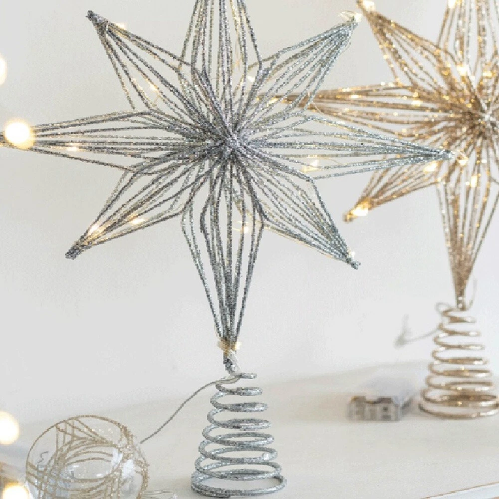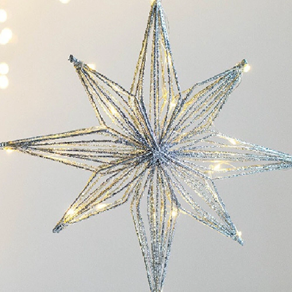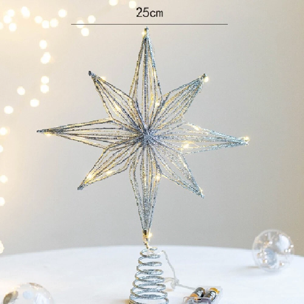 Christmas Tree Toppers Star LED Lamp Home Christmas Decorations for Tree4164 Illuminated your Christmas tree with our exquisite Tree Toppers. This beautifully designed decoration features a glowing star that creates a warm and festive perfect for celebrating the holiday season. Star ornament placed on the Christmas tree can add lot of festive to Christmas. Add nice and elegant style to your Christmas tree and make your home more beautiful. Very and stable, which means you can store it when you do not need and use it again in next Christmas. Suitable for company, shopping mall, restaurant, school, add strong Christmas to your , It can also be given as gift for your friend or family.Note: The actual product does not contain batteries, you need to bring 2 AA batteries size: 25 x 32CM Material: iron colour: silver Package Contents: 1 x Christmas Tree Toppers Star LED Light Only the above package content, other products are not included. Note: Light reflection and different displays may cause the color of the item in the picture a little different from the real thing. The measurement allowed error is +/- 1-3cm.
