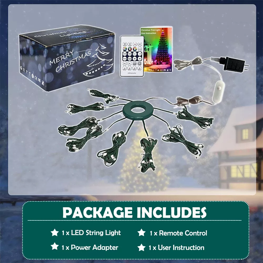 đ ă160 LED Christmas String Lightsă đ ăInstant Decorating!ă đ ăMulti-Function App Controlă đ ăSafe Waterfall Tree Lights& Easy to Installă đ ăPerfect Christmas Gifts& Decoration Choiceă Home Home Decoration Gift Idea Buy 1 Get 1 50% OFF Other Big Deals Follow Us [ Easy Set Up] [ Lightweight ] [ RGB Color Changing] [ 160 LED] [Decoration for Indoor Outdoor] Product Details đ ă160 LED Christmas String Lightsă -This string light is 52.5 ft long with 160 LED bulbs. Consists with 8 strands string lights, and each one drops 6.6 ft. Plug cable length:10ft. IP65 Waterproof Light is perfect for indoor&outdoor Christmas trees. Light up your home or backyard with this festive Christmas light display! đ ăInstant Decorating!ă - No need to string lights throughout the tree, all of the light strands are attached to a ring. Simply put the ring on top of the tree, take the twist ties off the light strands, let them cascade down, plug it in, and instant lights. Also, easy to put away and store. The power lead length: 10ft đ ăMulti-Function App Controlă -APP to control LED string lights, smarter than remote controller, including 120 modes. You can freely set all kinds of color by DIY colors and camera color picker. In addition, Our lights have a built-in beat sensor, and you can add the music to your phone. Let the light dance with the sound control. đ ăSafe Waterfall Tree Lights& Easy to Installă -Low voltage plug with UL certified to ensure safety use without worrying kids get an electric shock while playing near the lights. Easy to install, just hanging the top on an exterior wall, tree or eaves then you can drape or just make the 8 string lights as you want. đ ăPerfect Christmas Gifts& Decoration Choiceă -The waterfall tree lights can be used outdoor lighted tree ornaments, Christmas yard decorations, outside Christmas decorations lights, Christmas snowflake lights outdoor, hanging Christmas tree outdoor, spring decoration outdoor, also perfect Christmas gift for family, lovers, and friends. Package Included: - 1 x String Fairy Lights With Top Ring, 1 x Remote Control, 1 x Power Adapter, 1 x User Manual. Tree and other ornaments are not included Shipping Policy Payment Method Returns Policy Customer service Note Shipping Policy ⢠We always ship within 1-2 business days via USPS or UPS. You are expected to get the parcel within 4-7 business days. ⢠Free shipping available for USA address only. ⢠We do not change your shipping address by email. Pls make sure your address is correct before checking out and making payment. Payment Method ⢠Credit cards, debit cards, Apple Pay, Google Pay, and PayPal are accepted ⢠When you buy an item on eBay, you'll need to pay within 4 days. The sooner we receive your payment, the sooner we'll send your item. ⢠Platform is required by law to collect sales tax and applicable fees for certain tax authorities, you can see tax when checkout. ⢠If you have any problems paying for your items, please contact eBay. Returns Policy ⢠If a defective product was received, please do not hesitate to message us via eBay message within 7 days. We will response in 24 hours to resolve the problem. ⢠We stand behind our products. Items can be returned for exchange or full refund within 30 days from the date you receive. Please message us via eBay message before you return it. ⢠Return shipping is the responsibility of buyer unless the return is a result of our mistake (i.e., the wrong/ defective item has been sent). e will pay for shipping replacement back to you if an exchange is requested. ⢠Your full satisfaction is utmost important to us; We pledge to do everything possible to gain your trust and approval. Customer service ⢠Honest customer is our good friends. Your satisfaction is important to us. Everything goes better with understanding and communication. ⢠If you have any questions please via eBay Message for our Customer Service. We will respond via eBay Message in 1-2 business day or less. Please include your eBay ID. Note â˘Prior to any return please message us via ebay message, so we can help you quickly and efficiently. We aim to deal with all e-mails on a 24hr turn around Monday to Friday.. â˘Buyer is responsible for all applicable customs, import duties, and VATs. â˘In case there's inspection by the local customs or post office, deliver will be affected accordingly. â˘We maybe will send your multiply items in one package to let you receive your package safely together if you buy several items at the same time. If you want to send the package separately, Please make a note to remind me when you make the payment with PayPal. We sincerely hope you can consider this position, we will appreciate greatly. On Apr 11, 2023 at 02:07:09 PDT, seller added the following information: