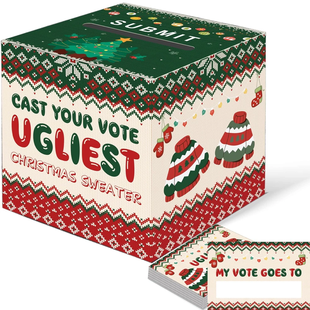 Christmas Ugly Sweater Contest Ballot Card Box, Voting Cards Box Set with 50 ...
