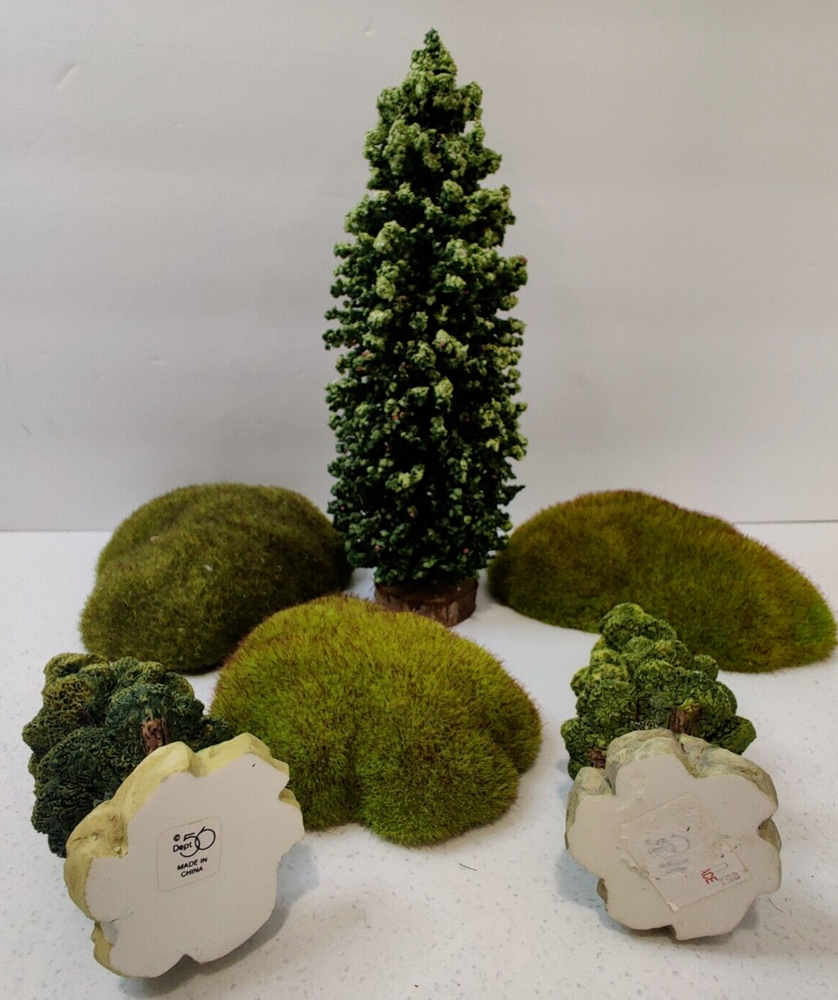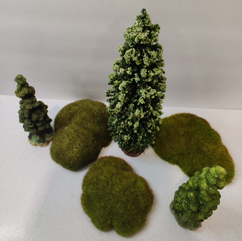 Seller Notes: “In very good condition” Compatible Product: For Scenery Type: Shrubs & trees for landscaping, moss rocks Brand: Couple of trees are Dept 56, others unbranded Set Includes: 3 trees, 3 moss rocks/schrubs Theme: Landscaping Color: Green Material: Resin, wood, plastic, cork